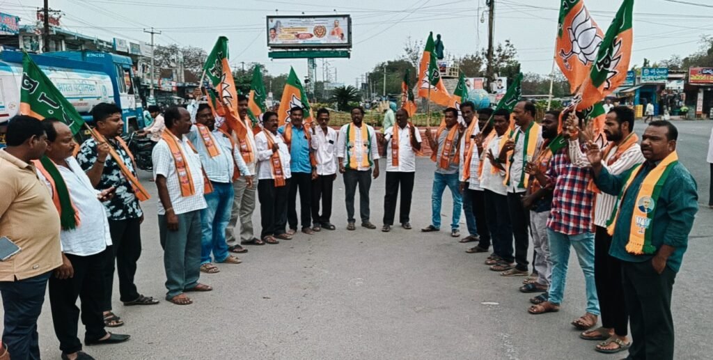 హుజురాబాద్ అంబేద్కర్ చౌరస్తాలో ధర్నా నిర్వహిస్తూ నిరసన వ్యక్తం చేస్తున్న బిజెపి నాయకులు, కార్యకర్తలు..