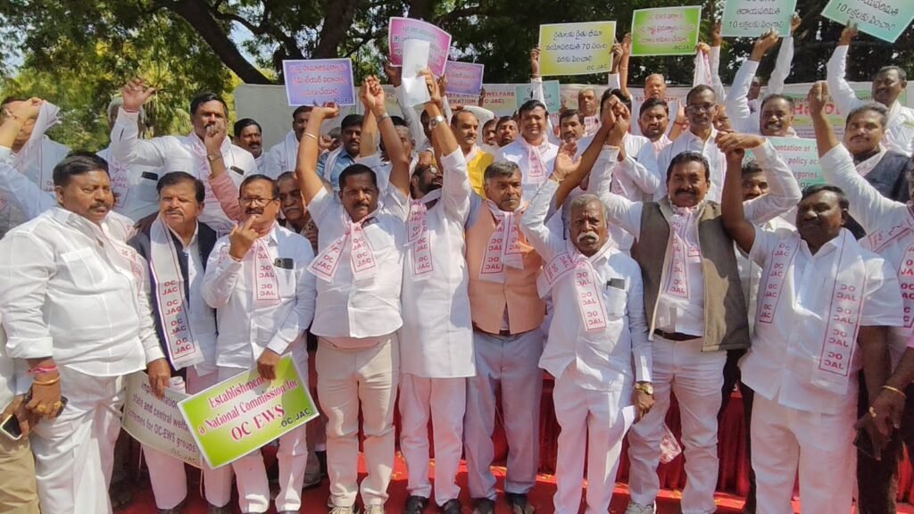 ఈడబ్ల్యూఎస్ రిజర్వేషన్లను సంపూర్ణంగా పటిష్ట అమలుకు జాతీయ స్థాయి ఓసి కమిషన్ ఏర్పాటు చేయాలని ఓసి జేఏసీ జాతీయ అధ్యక్షుడు పోలాడి రామారావు, జాతీయ చైర్మన్ నల్లా సంజీవరెడ్డి, తెలంగాణ రాష్ట్ర అధ్యక్షుడు గోపు జైపాల్ రెడ్డి, గౌరవ అధ్యక్షులు అమరవాది లక్ష్మీనారాయణ,గంగు ఉపేంద్ర శర్మ, వర్కింగ్ ప్రెసిడెంట్ తాడి శెట్టి పశుపతి లు డిమాండ్ చేశారు. రాజ్యాంగ బద్దంగా ఏర్పడ్డ 10 శాతం ఈడబ్ల్యూఎస్ రిజర్వేషన్లపై అసత్య ప్రచారాలు చేస్తున్న కుట్రలను సాగానివ్వబోమని , దీనిపై ప్రజలు అప్రమత్తంగా ఉండాలని ఓసి సామాజిక సంక్షేమ సంఘాల సమాఖ్య జాతీయ అధ్యక్షుడు పోలాడి రామారావుతో పాటు పలువురు ఓసి ఐకాస జాతీయ రాష్ట్ర నాయకులు పిలుపు నిచ్చారు. ఓసి పేదల న్యాయమైన డిమాండ్ల సాధనకు సోమవారం ఢిల్లీలోని జంతర్ మంతర్ వద్ద ఓసి జేఏసీ ఆధ్వర్యంలో జాతీయ స్థాయి ఓసిల మహాధర్నా నిర్వహించారు.