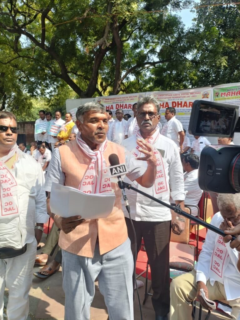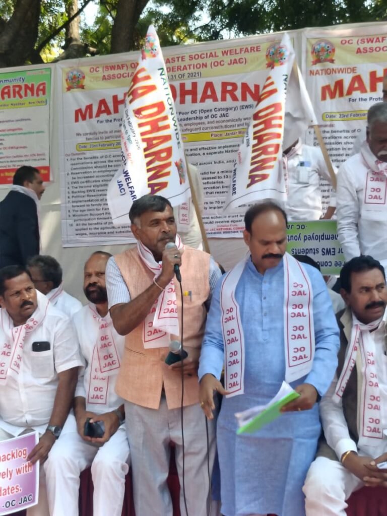 న్యూఢిల్లీ మహాధర్నాలో మాట్లాడుతున్న ఓసి జెఎసి జాతీయ అధ్యక్షుడు పోలాడి రామారావు..