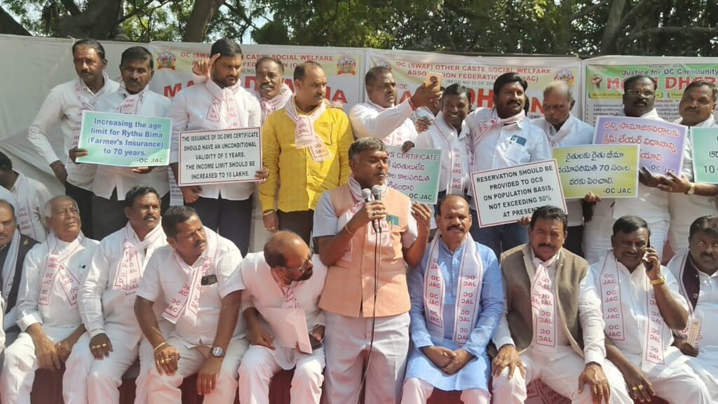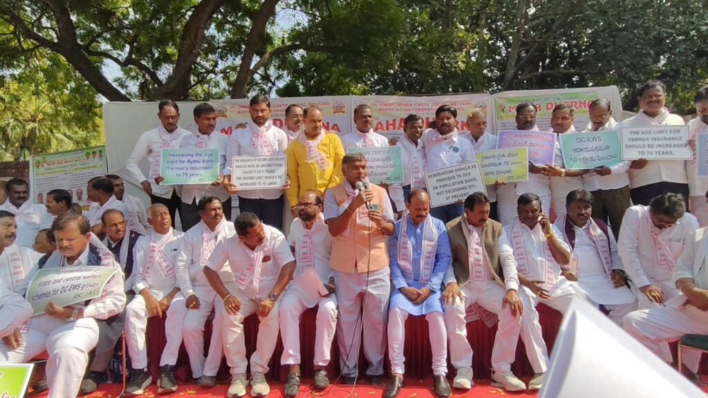 కేంద్ర రాష్ట్ర ప్రభుత్వాల సంక్షేమ పథకాలను వర్తింప చేయాలని కోరారు. రైతుల భీమావయోపరిమితిని 70 ఏళ్లకు పెంచాలని, రైతు పండించే ధాన్యానికి గిట్టుబాటు ధర కల్పించటానికి రైతు భాగస్వామ్యంతో ప్రత్యేక చట్టం తేవాలని సూచించారు, జాతీయ ఉపాధి హామీ పథకం ను వ్యవసాయ రంగంతో అనుసందానించాలని డిమాండ్ చేశారు,తమ డిమాండ్లను కేంద్ర రాష్ట్ర ప్రభుత్వాల దృష్టికి తీసుకువెళ్లేందు కోసమే దేశ రాజధాని ఢిల్లీ వేదికగా ఈనాటి ధర్నా నిర్వహించామని వెల్లడించారు. తాము వ్యక్తిగతంగా కలిసి ఆహ్వానించినా ఏ ఒక్క రాజకీయ పార్టీల ఓసి ప్రజాప్రతినిధులు హాజరకాకకపోవడాన్ని తీవ్రంగా పరిగణించి రాబోయే ఎన్నికల్లో మా దెబ్బకు అబ్బో అనే విధంగా దీటుగా గుణపాఠం చెబుతామని హెచ్చరించారు. ఈ ధర్నా కార్యక్రమానికి వివిధ రాష్ట్రాల ఓసి ఐకాస జాతీయ, రాష్ట్ర నాయకులు