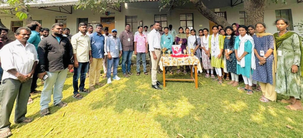 సివి రామన్ చిత్రపటానికి పూలమాల వేసి నివాళులర్పిస్తున్న కళాశాల ప్రిన్సిపాల్ తాల్లపెల్లి అజయ్