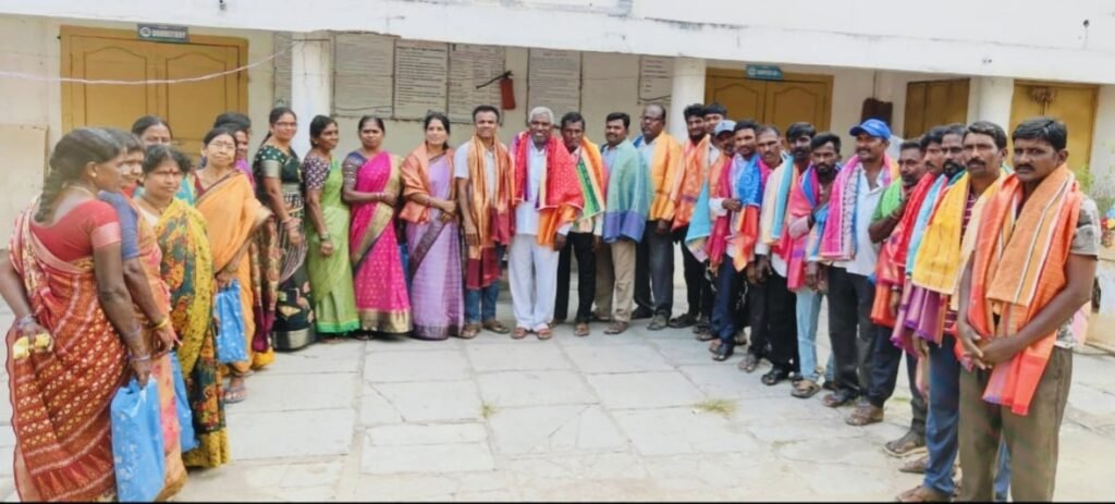 మున్సిపల్ ఉద్యోగులు, పారిశుద్ధ్య కార్మికులను సత్కరిస్తున్న కౌన్సిలర్ కేసు రెడ్డి లావణ్య నరసింహారెడ్డి దంపతులు..