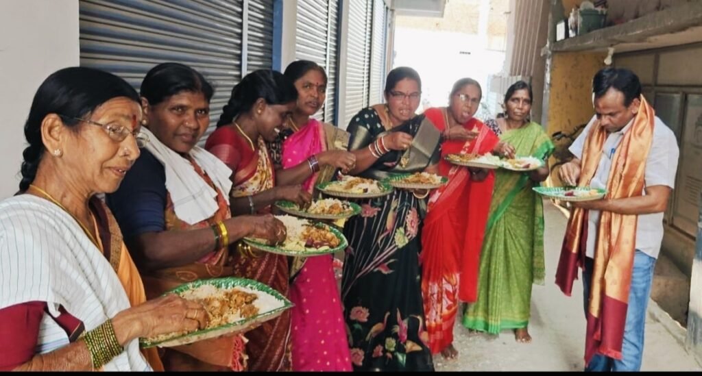 –కార్మికులతో సహపంక్తి భోజనాలు – పారిశుద్ధ్య మహిళా కార్మికులకు చీరెలు పంపిణీ చేసిన కౌన్సిలర్ కేసిరెడ్డి లావణ్య నరసింహారెడ్డి