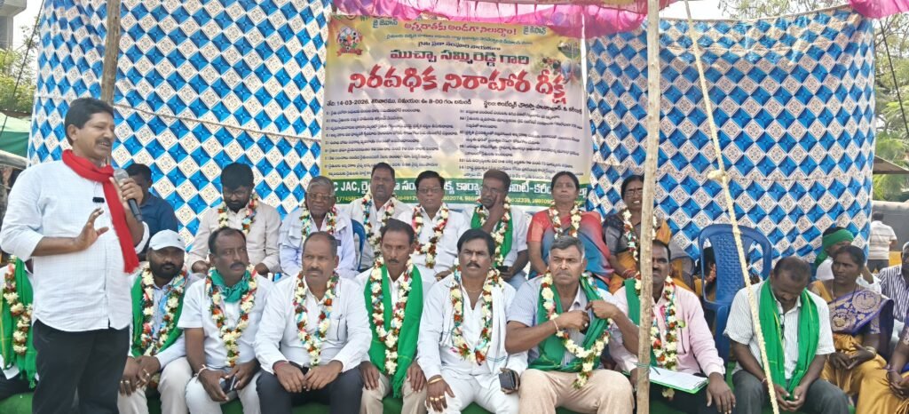 మండల యాదగిరి, స్వర్ణోదయం ప్రతినిధి హుజురాబాద్: ఎంతటి ప్రభుత్వమైనా.. ఎంత మెజారిటీ ఉన్నను.. అన్నదాతలను విస్మరించినట్లయితే.. రైతన్నలచే కన్నీరు పెట్టించినట్లయితే ఆ ప్రభుత్వాలు కుప్పకూలడం ఖాయమని… ఇది చరిత్ర చెబుతున్న సత్యమని రైతు ప్రజా సంఘాల సమాఖ్య జాతీయ అధ్యక్షులు పోలాడి రామారావు, సీపీఐ జిల్లా కార్యదర్శి మర్రి వెంకటస్వామి హెచ్చరించారు. వచ్చేనెల అనగా ఏప్రిల్ 28వ తేదీన ఉద్యమాల గడ్డగా ప్రసిద్ధి గాంచిన కరీంనగర్ నగరంలో లక్ష నుండి లక్షన్నర మంది రైతన్నల సమక్షంలో మహా గర్జన సమరభేరి నిర్వహించడానికి సన్నాహాలు ఇప్పటికే మొదలుపెట్టినామని.. దాదాపు ఇటీవల గెలిచిన 200 మంది సర్పంచులతో కరీంనగర్ గర్జన సదస్సు సంబంధించి కీలక చర్చలు చేశామని…నూతన సర్పంచుల సలహాలు సూచనలను నివేదిక రూపంలో తయారు చేయడం జరిగిందని రామారావు వెల్లడించారు. వ్యవసాయదారులు ఎదుర్కొంటున్న సవాలక్ష సమస్యలను ప్రభుత్వ దృష్టికి తీసుకువెళ్లి… నిర్ణీత గడువులోగా వాటిని పరిష్కరించాలని డిమాండ్ చేస్తూ కరీంనగర్ వరంగల్ హైవే మధ్యలో హుజురాబాద్ అంబేద్కర్ కూడలి వద్ద శనివారం ఉదయం రైతు ప్రజా సంఘాల నాయకుడు ముచ్చ సమ్మిరెడ్డి నిరవధిక నిరాహార దీక్షకు పూనుకోవడం జరిగిందని.. ఆయన దీక్షకు మద్దతుగా హుజురాబాద్, జమ్మికుంట, కమలాపూర్, ఇల్లంతకుంట, వావిలాల, వీణవంక, చల్లూరు, భీమదేవరపల్లి, ఎల్కతుర్తి, సైదాపూర్, శంకరపట్నం, మానకొండూర్, హసన్ పర్తి, తదితర ప్రాంతాల నుండి పార్టీలకు అతీతంగా అన్నదాతలు పెద్ద ఎత్తున దీక్ష శిబిరానికి తరలివచ్చి మద్దతు తెలిపారని రైతు ప్రజా సంఘాల సమాఖ్య సైతం సమ్మిరెడ్డి దీక్షకు మద్దతు తెలపడం జరుగుతున్నదని పోలాడి ప్రకటించారు. అంతకుముందు వరంగల్ రోడ్ బస్ డిపో కార్నర్ నుండి ఎడ్లబండి పై అన్నదాతల కేరింతల మధ్య ముచ్చ సమ్మిరెడ్డి పోలాడి రామారావు తో కలిసి అంబేద్కర్ కూడలి వద్ద ఏర్పాటుచేసిన నిరాహార దీక్ష శిబిరానికి చేరుకొని తన దీక్షను ప్రారంభించారు. దీక్ష శిబిరాన్ని సందర్శించిన అనంతరం