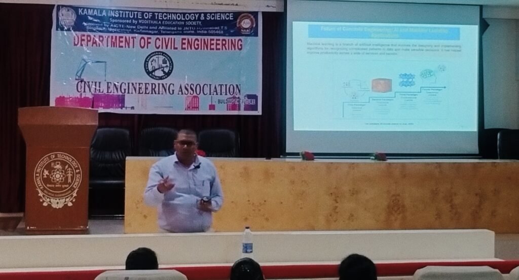 ప్రిన్సిపల్ డాక్టర్ కే.శంకర్ అధ్యక్షతన జరిగిన సమావేశంలో ఆయన మాట్లాడుతూ ఆర్టిఫిషియల్ ఇంటెలిజెన్సీ సహాయముతో బిల్డింగ్ మెటీరియల్స్ లను తయారు చేస్తున్నారన్నారు. మెటీరియల్స్ యొక్క పనితనాన్ని ఆర్టిఫిషియల్ ఇంటెలిజెన్సీతో సిమ్లేషన్ చేసి పరీక్షిస్తున్నారన్నారు.