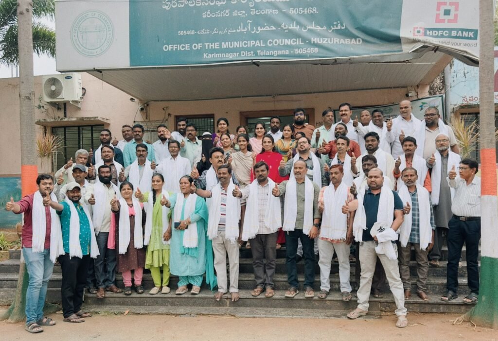 మండల యాదగిరి, స్వర్ణోదయం ప్రతినిధి హుజురాబాద్ : కరీంనగర్ జిల్లా హుజురాబాద్ పురపాలక సంఘము ప్రాపర్టీ టాక్స్ 100% వసూలు చేసి తెలంగాణలో 2 వ స్థానములో నిలిచింది. ఇంకా (13) రోజులు ఉండగానే 100% ప్రాపర్టీ టాక్స్ వసూలు చేసి రికార్డు సృష్టించడం జరిగింది. ఈ సందర్భముగా పాలకవర్గము వార్డు అధికారులను అభినందించి ఘనంగా సన్మానించారు. ఈ కార్యక్రమములో చైర్ పర్సన్ సుహాసిని రోంటాల, వైస్ చైర్ పర్సన్ గూడూరి అంజలి మాట్లాడుతూ, అంకితభవంతో ఫీవర్ నిర్వహించిన మున్సిపల్ ఉద్యోగులు, సిబ్బందికి అభినందనలు తెలిపారు. పన్నుల వసూలు పట్టణాభివృద్ధికి ఎంతో ఉపయోగపడుతుందన్నారు. దీనిలో వార్డు కౌన్సిలర్లు, మరియు కమీషనర్ ముసాబ్ అహ్మద్ సయ్యద్, మేనేజర్ రావుల భూపాల్ రెడ్డి, రెవిన్యూ ఇన్స్పెక్టర్ ఇల్లందుల రమేష్, మునిసిపల్ ఇంజినీర్లు ఎన్. సుధాకర్ రెడ్డి, డి నరేష్ , టౌన్ ప్లానింగ్ సూపర్ వైజర్ అశ్వనిగాంధీ, సానిటరీ ఇన్స్పెక్టర్ డి. కిరణ్ పాల్గొన్నారు.