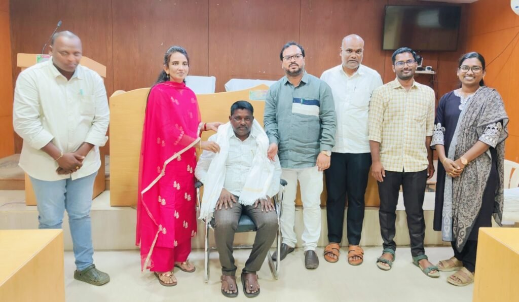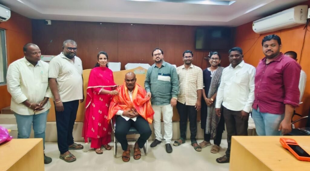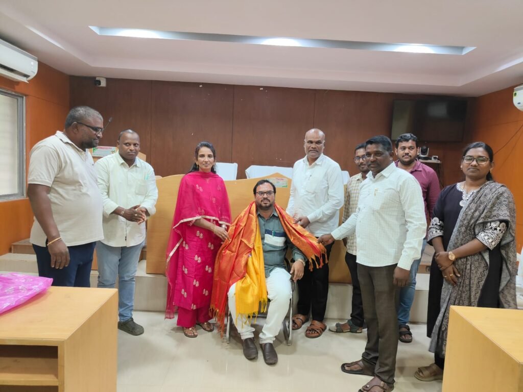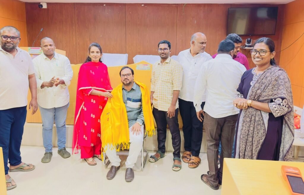మేనేజర్ భూపాల్ రెడ్డి నీ సన్మానిస్తున్న చైర్పర్సన్ సుహాసిని, ఇతర ఉద్యోగులు..