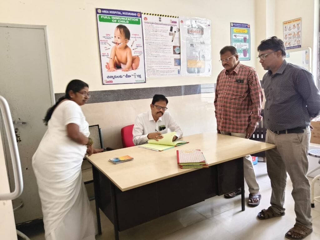 వైద్య ఆరోగ్యశాఖ సిబ్బందిని అడిగి తెలుసుకొని రిజిస్టర్ లను పరిశీలిస్తున్న జిల్లా వైద్య ఆరోగ్యశాఖ అధికారి డాక్టర్ వెంకటరమణ