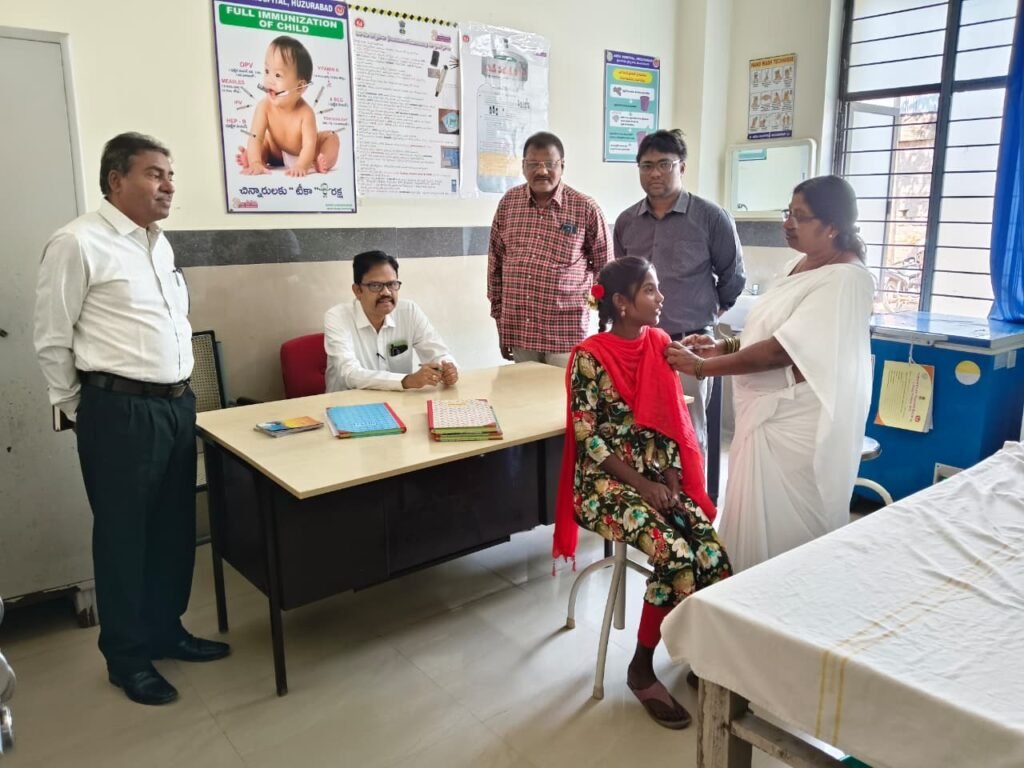 మండల యాదగిరి, స్వర్ణోదయం ప్రతినిధి హుజురాబాద్: 14 సంవత్సరాలు నిండిన బాలికల్లో గర్భాశయ క్యాన్సర్ రాకుండా ఉండేందుకు రూపొందించిన హెచ్పీవీ వ్యాక్సిన్ పట్ల ప్రజల్లో మరింత అవగాహన కల్పించాలని జిల్లా వైద్య ఆరోగ్యశాఖ అధికారి డాక్టర్ వెంకటరమణ అన్నారు. శుక్రవారం హుజురాబాద్ ప్రభుత్వ ఏరియా ఆసుపత్రిని ఆయన ఆకస్మికంగా తనిఖీ చేశారు. ఈ సందర్భంగా ఆసుపత్రిలో నిర్వహిస్తున్న హెచ్ పి వి వ్యాక్సిన్ కేంద్రాన్ని ఆయన పరిశీలించారు. ఇప్పటివరకు ఎంతమంది వ్యాక్సిన్ వేసుకున్నారు, ఇంకా ఎంతమంది వ్యాక్సిన్ వేసుకోవాల్సి ఉంది అన్న విషయాన్ని వైద్య ఆరోగ్యశాఖ సిబ్బందిని అడిగి తెలుసుకొని రిజిస్టర్ లను పరిశీలించారు.14 సంవత్సరములు నిండిన బాలికలను వ్యాక్సిన్ సెంటర్ కి తరలించి హెచ్ పి వి టీకా తీసుకునేటట్లు చేయాలని సిబ్బందిని ఆదేశించారు. స్కూళ్లలో 14 సంవత్సరాల నిండిన బాలికలను హెచ్పీవీ వ్యాక్సిన్ వేసుకునేటట్లు మోటివేట్ చేయాలని వారిలో ఉన్న అపోహలను తొలగించాలని కోరారు.