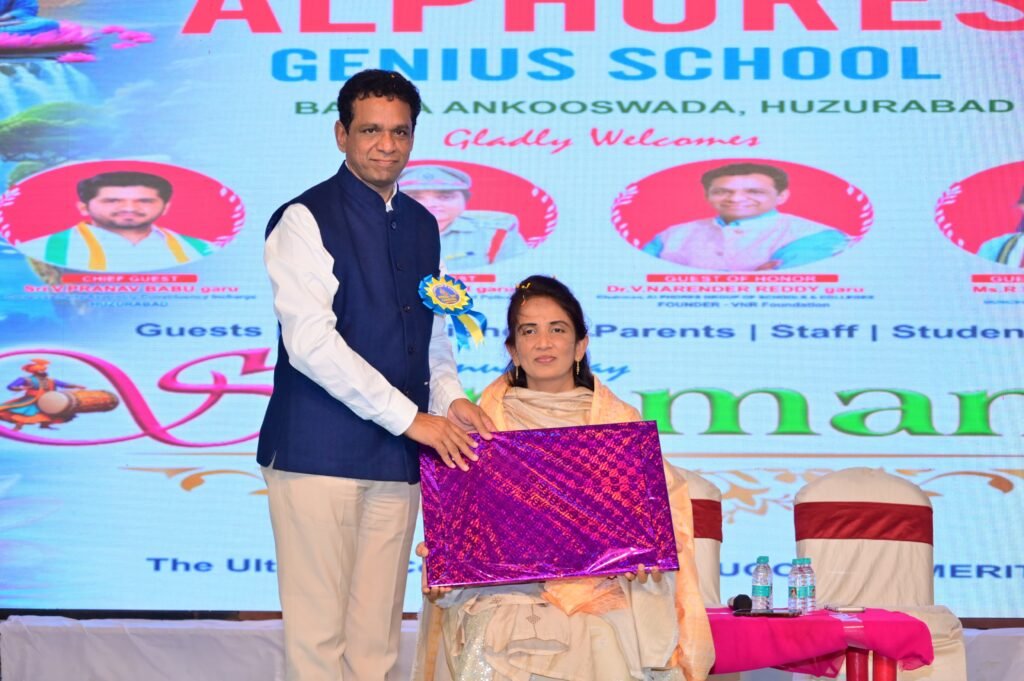 మండల యాదగిరి, స్వర్ణోదయం ప్రతినిధి హుజురాబాద్, మార్చి 23: హుజురాబాద్ పట్టణంలోని ఆల్ఫోర్స్ జీనియస్ స్కూల్లో విద్యా సంవత్సరం ముగింపు అన్యూవల్ డే వేడుకలు సోమవారం రోజున ఘనంగా నిర్వహించారు. ఈ సందర్భంగా విద్యార్థులు తమ ప్రతిభను ప్రదర్శించారు, ఉత్తమ విద్యార్థులకు ఆల్ఫోర్స్ అధినేత డాక్టర్ వి నరేందర్ రెడ్డి జ్ఞాపికలతో సత్కరించారు. ఈ సందర్భంగా ఆల్ఫోర్స్ విద్యా సంస్థల అధినేత డాక్టర్ నరేందర్ రెడ్డి మాట్లాడుతూ ప్రతి సంవత్సరం లానే ఈ సంవత్సరం కూడా అన్యువల్ డే వేడుకలను సమ్మాన్ పేరుతో ఘనంగా నిర్వహించామని తెలుపుతూ హుజురాబాద్ పట్టణం పట్టణాలతో పోలిస్తే ఇక్కడ కూడా మంచి విద్యా అవకాశాలను పిల్లలకి ఇవ్వాలని నిశ్చయించి హుజురాబాద్ బ్రాంచ్ పెట్టిన రెండవ సంవత్సరంలోనే అన్ని తరగతులు నిండేలా అడ్మిషన్స్ సాధించామని తెలిపారు. దీనికి తల్లిదండ్రులకు తమ అల్ఫోర్స్ విద్యాసంస్థల పైన ఉన్న మంచి నమ్మకమేనని, తల్లిదండ్రుల నమ్మకాన్ని తగ్గట్టుగా వచ్చే సంవత్సరం విద్యార్థులకు మరింత మెరుగైన సదుపాయాలను కల్పిస్తామని చెప్పారు. అలాగే తమ ఆల్ఫోర్స్ విద్యార్థులు ఎక్కడ చదివినా మంచి మార్కులు సాధించి ఐఐటి, ఎన్ఐటి లు సాధిస్తున్నారని తెలిపారు. తదనంతరం హుజురాబాద్ మున్సిపల్ చైర్ పర్సన్ రోంటాల సుహాసిని మాట్లాడుతూ, తను కూడా ఒకప్పుడు ఆల్ఫోర్స్ విద్యార్థిని అని, తను చదువుకున్న విద్య సంస్థకు ముఖ్యఅతిథిగా రావడం తనకు గర్వకారణంగా ఉందని, విద్యార్థులు మరింత కష్టపడి చదివినప్పుడే మంచి మార్కులు సాధించి గొప్ప గొప్ప విజయాలు సాధిస్తారని తెలిపారు. ఈ సందర్భంగా విద్యార్థులు చేసిన సాంస్కృతి కార్యక్రమాలు అందరిని అలరించాయి. ఈ సందర్భాన్ని పురస్కరించుకొని పాఠశాల అకాడమిక్, క్రీడా సాంస్కృతిక రంగాల్లో సాధించిన విజయాలను ఏఐ ప్రజెంటేషన్ ద్వారా తల్లిదండ్రులకు తెలిపారు. ఈ కార్యక్రమంలో పాఠశాల ప్రిన్సిపల్, వైస్ ప్రిన్సిపల్, ఉపాధ్యాయులు, తల్లిదండ్రులు, విద్యార్థులు పాల్గొన్నారు.