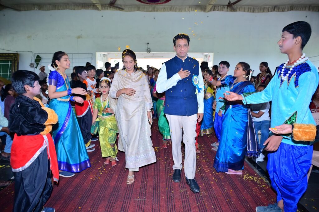 చిన్నారులకు జ్ఞాపికలు అందజేస్తున్న సుహాసిని, నరేందర్ రెడ్డి..