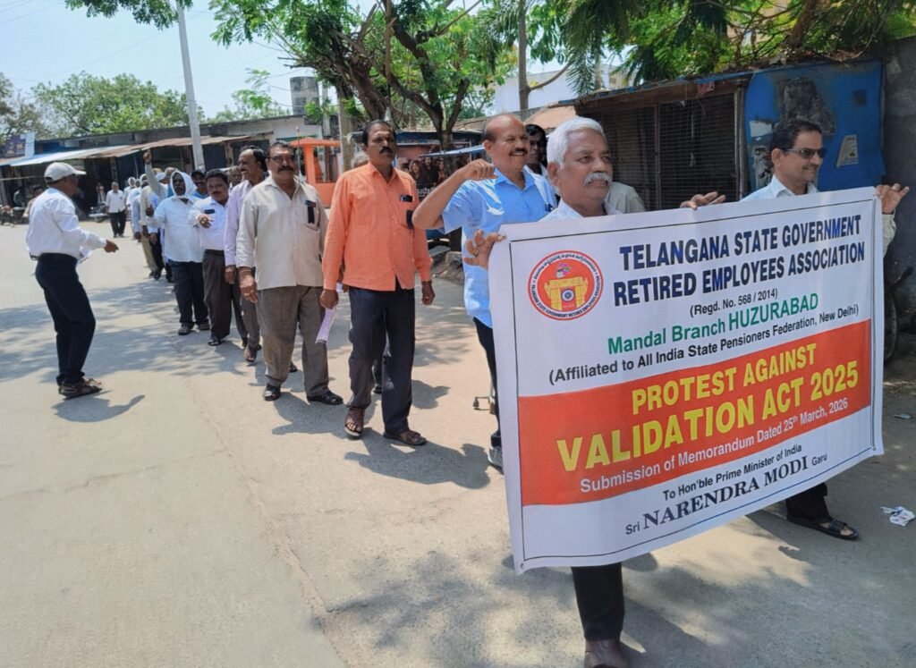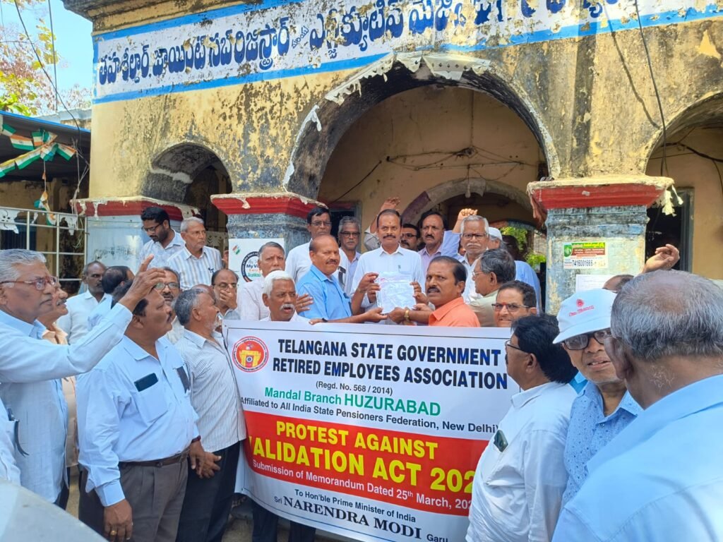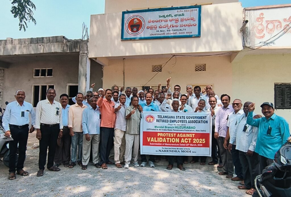 ఉద్యోగుల, పెన్షనర్ల ప్రయోజనాలను కాపాడే చట్టాలను చేయాల్సిన ప్రభుత్వాలే వారి ప్రయోజనాలకు భంగం కలిగించే వాలిడేషన్స్ చట్టం తీసుకురావడం దారుణం అన్నారు. వ్యాలిడేషన్ బిల్లు చట్టంగా మారడం లక్షలాదిమంది కేంద్ర రాష్ట్ర ప్రభుత్వ పెన్షనర్లకు పెనుభూతం లా మారిందని అన్నారు. పెన్షనర్ల ప్రయోజనాలకు గొడ్డలి పెట్టు లాంటి చట్టాన్ని తీసుకురావడం ఏమిటని వారు ఆవేదన వ్యక్తం చేశారు .ఈ చట్టం ద్వారా పెన్షనర్లను రెండు వర్గాలుగా విభజించడం శోచనీయమని వారన్నారు. 2026 జనవరి 1వ తేదీ కంటే ముందు రిటైర్డ్ అయిన ఉద్యోగులకు ఎలాంటి వేతనము పెంపు లేకపోవడం కరువు భత్యాన్ని నిలిపివేయడం దారుణమని మండిపడ్డారు. కేవలం వారు రిటైర్ అయిన రోజు ఉన్న పెన్షన్ మాత్రమే చెల్లించే విధంగా నిబంధనలు రూపొందించటం పెన్షనర్ల అస్తిత్వానికి ముప్పు వాటిల్లుతుందని అన్నారు. కేంద్ర ప్రభుత్వం ఈ చట్టాన్ని వెంటనే ఉపసంహరించుకోవాలని కోరారు. ఈ కార్యక్రమంలో సంఘం అధ్యక్షులు వైద్య లక్ష్మయ్య, కార్యదర్శి గంజి జయవర్ధన్, కోశాధికారి దుర్గాజి, కన్నం ప్రభాకర్, గాజుల చారుదత్తు, గుంటి రాజయ్య, జున్నుతుల రాo రెడ్డి, మాడిశెట్టి నరసయ్య, పిల్లల లక్ష్మీనారాయణ, గణపతిరెడ్డి, కాసర్ల శ్రీహరి, ఇలాసాగరం వీరస్వామి, విష్ణుదాసు గోపాలరావు, వేల్పుల రత్నం, కొన్ని రాజిరెడ్డి, సొల్లు సారయ్య, తిరుపతిరెడ్డి, కొమురయ్య తదితరులు పాల్గొన్నారు.