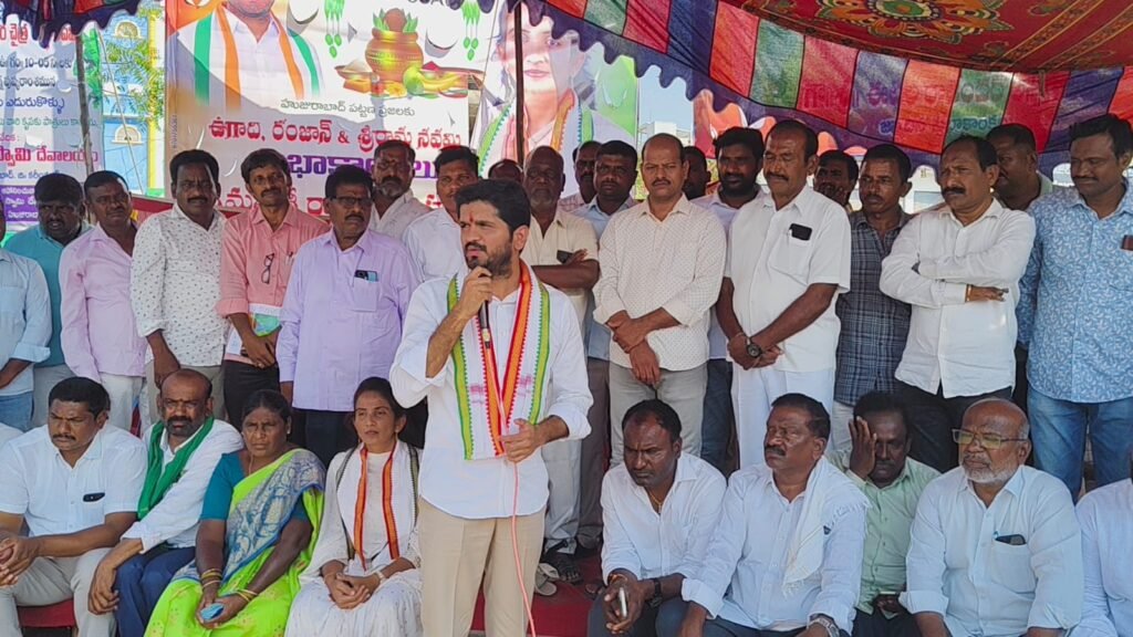 మాట్లాడుతున్న కాంగ్రెస్ పార్టీ నియోజకవర్గ ఇన్చార్జ్ వోడితల ప్రణవ్