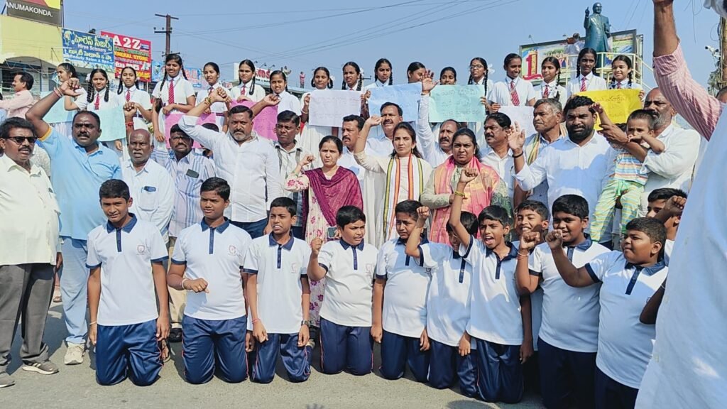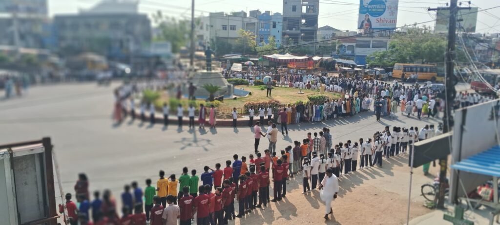 గత పది రోజులుగా హుజురాబాద్ ప్రాంతంలో డంపింగ్ యార్డుకు వ్యతిరేకంగా అఖిల పక్ష, వివిధ కుల ప్రజా సంఘాల జేఏసీ ఆధ్వర్యంలో చేపట్టిన దీక్షలకు మద్దతుగా బుధవారం వేలాది మంది ప్రభుత్వ ప్రైవేట్ పాఠశాలల విద్యార్థులతో అంబేద్కర్ కూడలి చౌరస్తాలో చుట్టూ అర కిలో మీటరుతో పాఠశాలల యాజమాన్యాల వారిచే మానవ హారం నిర్వహించారు. .