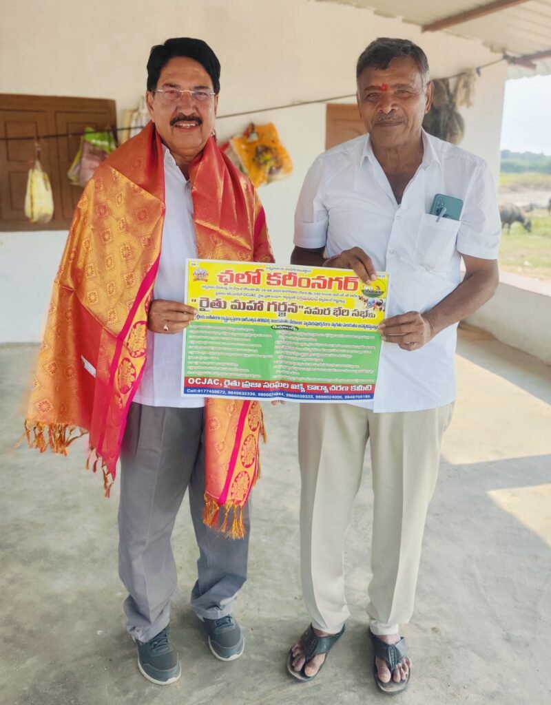 డిమాండ్ల సాధనకు కరీంనగర్ జిల్లా కేంద్రంలో ఏప్రిల్ 28 న ఓసి జేఏసీ రైతు ప్రజాసంఘాల సంయుక్తాద్వార్యంలో రాజకీయాల కతీతంగా రెండు లక్షల మందితో రాష్ట్రస్థాయి రైతుల మహాగర్జన సమర భేరి సభను నిర్వహిస్తున్నట్లు వెల్లడించారు. ఈ సభకు వివిధ రాజకీయ పార్టీల నేతలను అన్నీ కుల సంఘాల సమాఖ్య రైతు ప్రజాసంఘాల నేతలను స్వయంగా కలిసి ఆహ్వానించగా వారు సానుకూలంగా స్పందించారని పోలాడి రామారావు తెలిపారు. రామారావు వెంట రైతు ప్రజాసంఘాల జేఏసీ రాష్ట్ర అధ్యక్షుడు గూడూరి స్వామిరెడ్డి, నాయకులు జిమ్మల భీంరెడ్డి, గూటం జోగిరెడ్డి, కొడకండ్ల సుదర్శన్ రెడ్డి, తాటిపల్లి రాజన్న, బోయినపల్లి రాజేశ్వర్ రావు, వన్యాల విష్ణువర్ధన్ రెడ్డి, పూసాల సంపత్ తదితర ప్రజాసంఘాల నాయకులు ఉన్నారు.