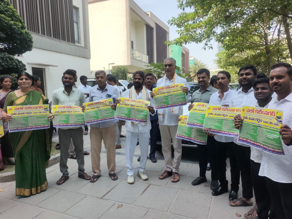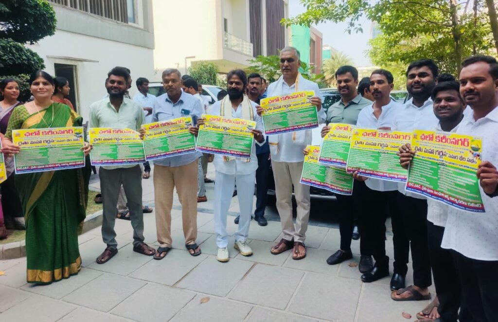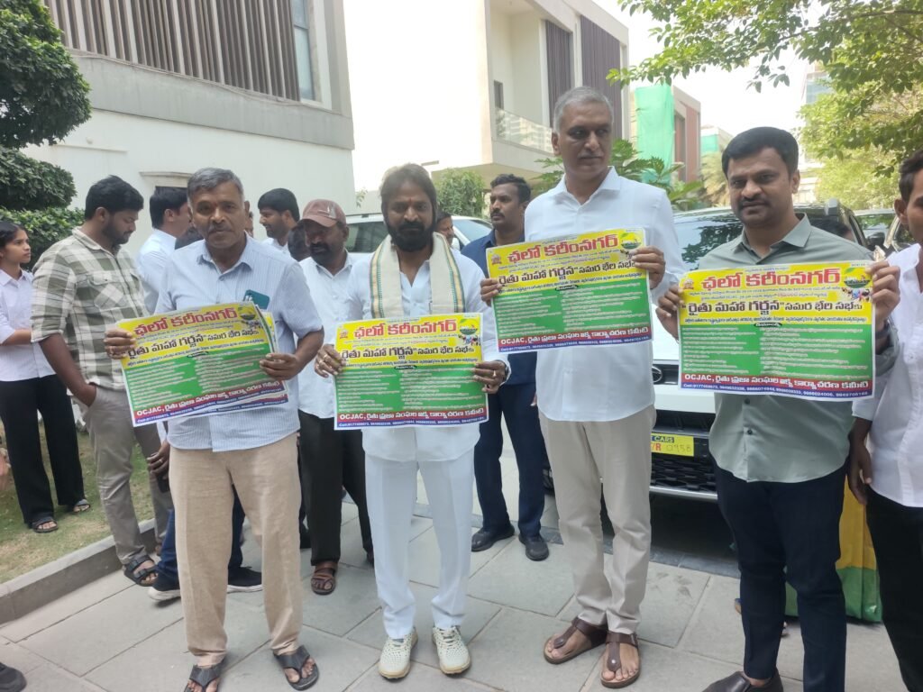 ఉమ్మడి మహబూబ్ నగర్, ఉమ్మడి మెదక్, రంగారెడ్డి జిల్లాల రైతు ప్రజాసంఘాల నాయకులతో కలిసి శుక్రవారం రైతు ప్రజాసంఘాల జేఏసీ జాతీయ అధ్యక్షుడు పోలాడి రామారావు హైదరాబాద్ లో మాజీ మంత్రులు తన్నీరు హరీష్ రావు, వీ.శ్రీనివాస్ గౌడ్, సుద్దాల దేవయ్య, రావుల చంద్రశేఖర్ రెడ్డి, మాజీ ఎస్సీ కార్పొరేషన్ చైర్మన్ ఎర్రోళ్ల శ్రీనివాస్, మాజీ ఎమ్మెల్యేలు, వివిధ హోదాల్లో ఉన్న తాజా మాజీ ప్రజాప్రతినిధులను కరీంనగర్ లో ఈనెల 28న అన్నదాతలకు వివిధ సామాజిక వర్గాలకు ఇచ్చిన హామీలను నెరవేర్చాలని డిమాండ్ చేస్తూ రైతు ప్రజా సంఘాల ఆధ్వర్యంలో నిర్వహించే రాష్ట్రస్థాయి రైతుల మహా గర్జన సమర భేరి సభకు ఆహ్వానిస్తూ ఆహ్వాన పత్రికలను అందజేసి వారిచే రైతుల మహాగర్జన సభ గోడ ప్రతులను రామారావు ఆవిష్కరింప జేశారు.