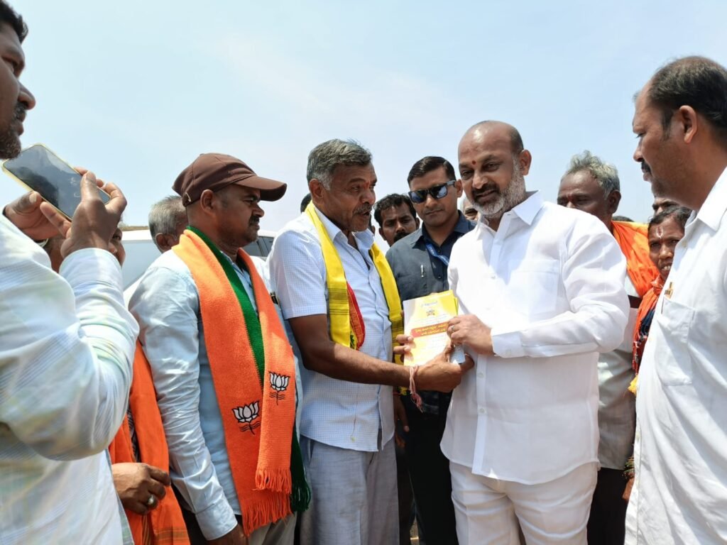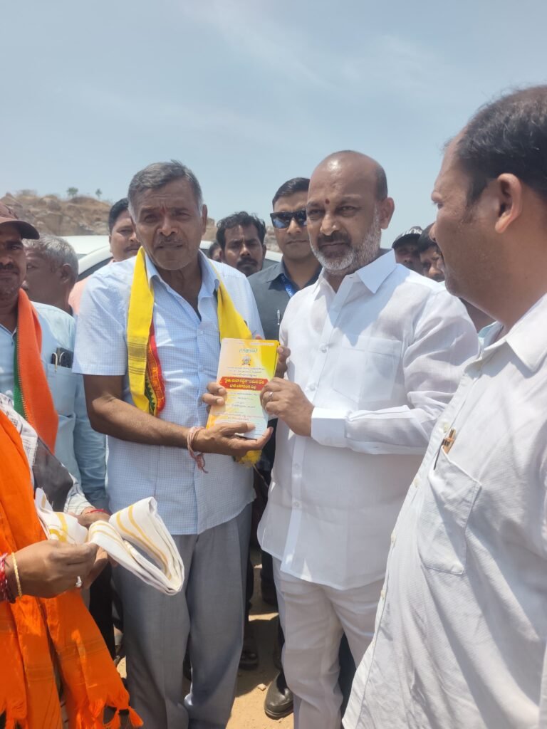 డంపింగ్ యార్డు పరిశీలనకు హుజురాబాద్ కు వచ్చిన కేంద్ర మంత్రి బండి సంజయ్ నీ ప్రజా సంఘాల నాయకుల తో కలిసి పోలాడి రామారావు రైతుల మహాగర్జన సమర భేరి సభ ఆహ్వాన పత్రికలను అందజేయగా స్పందించిన కేంద్ర మంత్రి బండి సంజయ్ కరీంనగర్ లో నిర్వహించే రైతుల సభకు మద్దతు సంపూర్ణ సహకారం అందిస్తానని తెలిపారు. అందుకు ప్రజా సంఘాల సమాఖ్య తరపున కేంద్ర మంత్రి బండి సంజయ్ కి పోలాడి రామారావు ప్రత్యేక కృతజ్ఞతలు తెలిపారు. ఈ సందర్భంగా ప్రజా సంఘాల నాయకులతో కలిసి జాతీయ అధ్యక్షుడు పోలాడి రామారావు మాట్లాడుతూ రైతు ప్రభుత్వం అని గొప్పలు చెప్పుకొనే సిఎం రేవంత్ సర్కార్ అన్నదాతల సంక్షేమం పై నిర్లక్ష్యం ఎందుకని ప్రశ్నించారు. వ్యవసాయ రంగానికి బడ్జెట్ లో నిధుల కేటాయింపులు తగ్గించిన ప్రభుత్వం రాష్ట్రంలో 70శాతం మిగిలి ఉన్న రెండు లక్షల రుణమాఫీకి నిధులు కేటాయించలేదని కౌలు రైతులకు ఇచ్చిన హామీల ఊసే లేదని, అన్ని రకాల పంటలకు 500 రూ. బోనస్ ఇవ్వకుండా కేవలం సన్న రకాలకు అడపా దడపా అర కొరగా ఇస్తూ మోసాగించిందన్నారు.