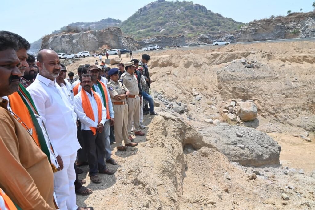 డంపింగ్ యార్డ్ ప్రాంతాన్ని పరిశీలిస్తున్న కేంద్ర మంత్రి బండి సంజయ్
