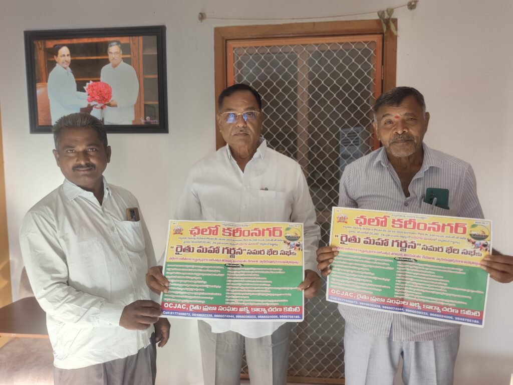 ఏప్రిల్ 28 న కరీంనగర్ లో రైతు ప్రజాసంఘాల ఐకాస ఆధ్వర్యంలో రాష్ట్ర వ్యాప్త రైతుల మహా గర్జన సమర భేరి సభను పార్టీల కతీతంగా చారిత్రాత్మకంగా నిర్వహిస్తామని ఉమ్మడి కరీంనగర్ జిల్లా నుంచే 50 వేల మంది తరలి వస్తున్నారని సభకు 30 వేల మంది మహిళలలు 10 వేల మంది యువత తరలి వస్తున్నారని ఇతర జిల్లాల నుంచి లక్షకు పైగా స్వచ్ఛందంగా వాహనాలు ఏర్పాటు చేసుకొని సభకు హాజరు కానున్నట్లు మొత్తంగా రెండు లక్షల మందికి తగ్గకుండా వస్తున్నారని మానకొండూర్, చొప్పదండి, హుస్నాబాద్, హుజురాబాద్ నియోజక వర్గాల నుంచి 800 ట్రాక్టర్ల తో మిగతా వారు 1500 బస్సులో ఇతర వాహనాల ద్వారా సభకు రావడానికి ఎక్కడికక్కడ సమన్వయ కమిటీ తరపున శరవేగంగా ఏర్పాట్లు పూర్తి చేసినట్లు, రాష్ట్ర వ్యాప్తంగా భారీ ఎత్తున తరలి వచ్చి మహాగర్జన సభను విజయవంతం చేయాలని పోలాడి రామారావు కోరారు. ఈ కార్యక్రమంలో రైతు ప్రజాసంఘాల రాష్ట్ర జిల్లా నియోజకవర్గ నాయకులు బైరెడ్డి రాంరెడ్డి, నలుమాసు ప్రభాకర్, మిర్యాల ప్రసాద్ రావు, గుడాల శ్రీనివాస్, పోరెడ్డి శంతన్ రెడ్డి, ఎడవెల్లి కొండాల్ రెడ్డి, యెన్నం కిషన్ రెడ్డి, వెంకట్ రెడ్డి, జంగిలి సాగర్, ఇరుమళ్ళ సురేందర్ రెడ్డి, పోల్సాని రామారావు, ప్రతాప తిరుమలరెడ్డి, కొలిపాక సమ్మయ్య, మహంకాళి రాజన్న, సత్యనారాయణ, శీలం రాజేంద్రకుమార్, సంతోష్ రావు, కౌన్సిలర్లు గందే శ్రీనివాస్, కేసిరెడ్డి లావణ్య నర్సింహారెడ్డి, ప్రతాప మంజుల కృష్ణ, నాయకులు కొండ్ర నరేష్, ముక్క రమేష్, గోవర్ధన్, అన్నాడి రవీందర్ రెడ్డి, ప్రతాప్ రెడ్డిలతో పాటు పలువురు సర్పంచులు, సింగిల్ విండో మాజీ చైర్మన్లు, మాజీ ఎంపీపీలు, జడ్పీటీసీలు, ఎంపీటీసీలు, వివిధ కుల సంఘాల నాయకులు పాల్గొన్నారు.