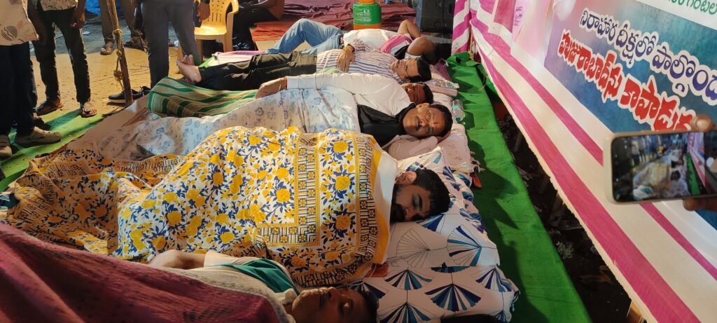దీక్ష శిబిరం వద్ద ఎమ్మెల్యేతో పాటు నిద్రిస్తున్న నాయకులు, కార్యకర్తలు, అభిమానులు..