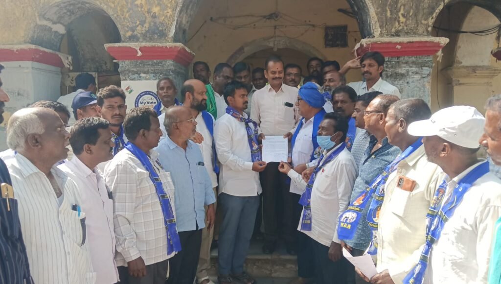 డంపింగ్ యార్డు రద్దు చేయాలని తాసిల్దార్ కు వినతిపత్రం ఇస్తున్న బిఎస్పి నాయకులు..