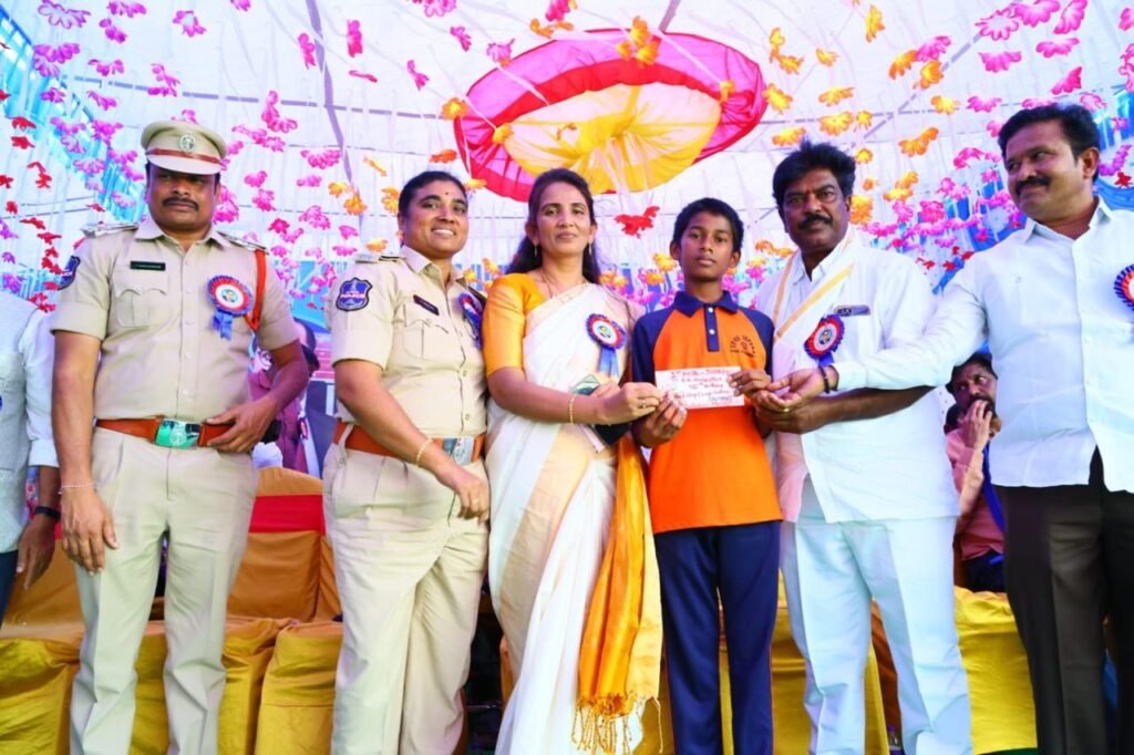 ప్రతిభ కనబరిచిన విద్యార్థులకు నగదు పురస్కారాలు అందజేస్తున్న అతిథులు..