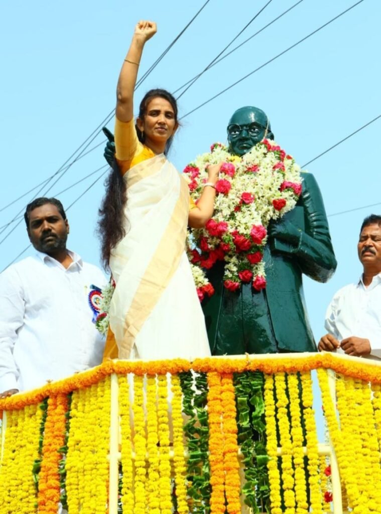 అంబేద్కర్ విగ్రహానికి పూలమాల వేసి