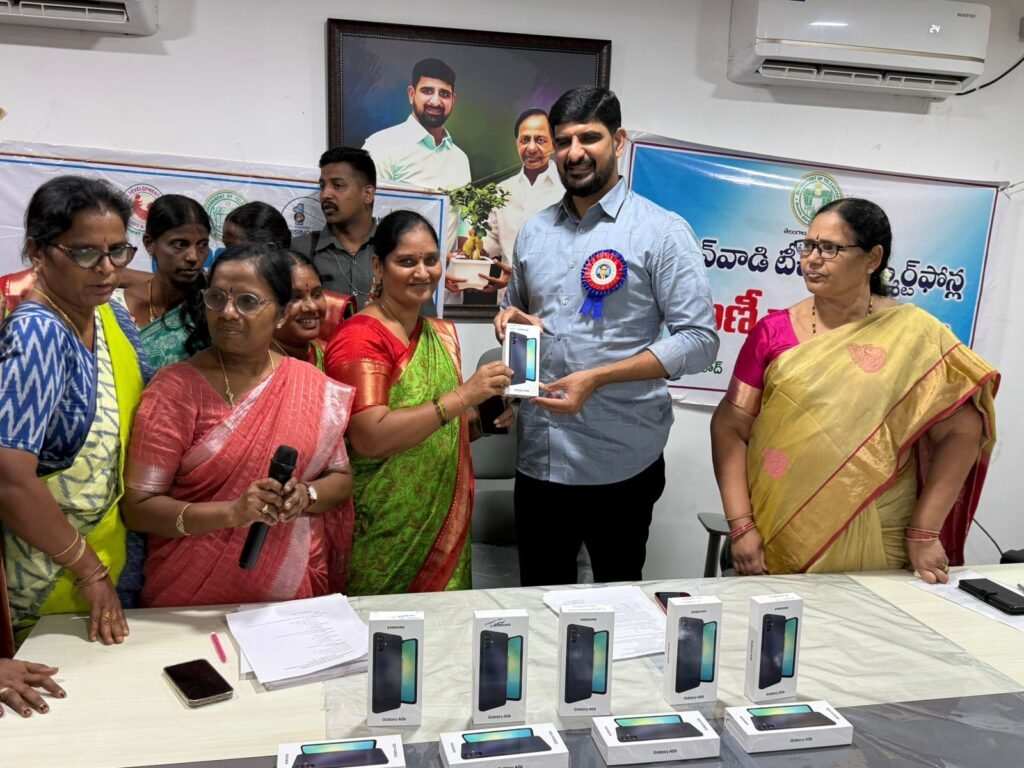 అంగన్వాడి టీచర్లకు స్మార్ట్ ఫోన్లు పంపిణీ చేస్తున్న ఎమ్మెల్యే పాడి కౌశిక్ రెడ్డి