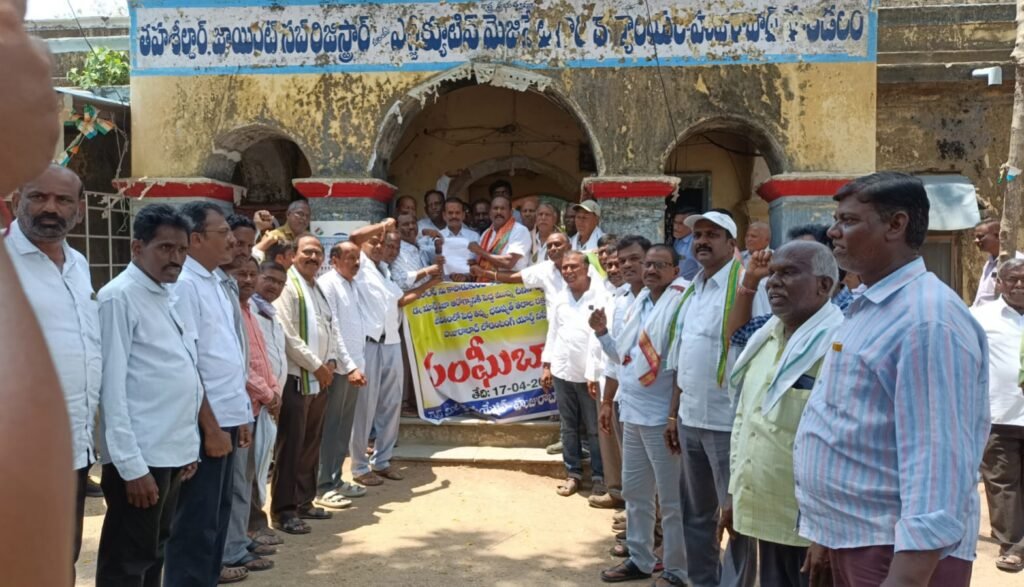 అనంతరం ర్యాలీగా తాసిల్దార్ కార్యాలయం వరకు వెళ్లి వినతి పత్రం అందజేశారు. కాగా ఈ దీక్షా శిబిరానికి మున్సిపల్ చైర్ పర్సన్ సుహాసిని, కౌన్సిలర్లు పలువురు కాంగ్రెస్ నాయకులు సందర్శించి సంఘీభావం తెలిపారు. ఈ కార్యక్రమంలో రైస్ మిల్లర్స్, సీడ్ మిల్స్ అసోసియేషన్ నాయకులు కళ్లెపు మోహన్ రావు, ఐ భాస్కర్ రెడ్డి, క్యాస ఉపేందర్, సంపత్ రావు, ఎర్రం రాజన్న, కే శ్రీనివాస్, సముదర్ రావు, వీరభద్రారావు, క్యాస నారాయణ, శ్రీనివాస్, శ్రీకాంత్, సురేందర్రావు, అఖిలపక్ష నాయకులు ఈశ్వర్ రెడ్డి, రత్నం, ఎడవల్లి కొండల్ రెడ్డి, గుడిపాటి జైపాల్ రెడ్డి, వెంకట్రావు, రైతు ప్రజా సంఘాల జేఏసీ జాతీయ అధ్యక్షులు పోలాడి రామారావు, పోల్సాని రామారావు, చందుపట్ల జనార్ధన్, రాజేశ్వరరావు, సమ్మయ్య లక్ష్మణమూర్తి, ఎల్లయ్య, హనుమంతరావు తదితరులు పాల్గొన్నారు.