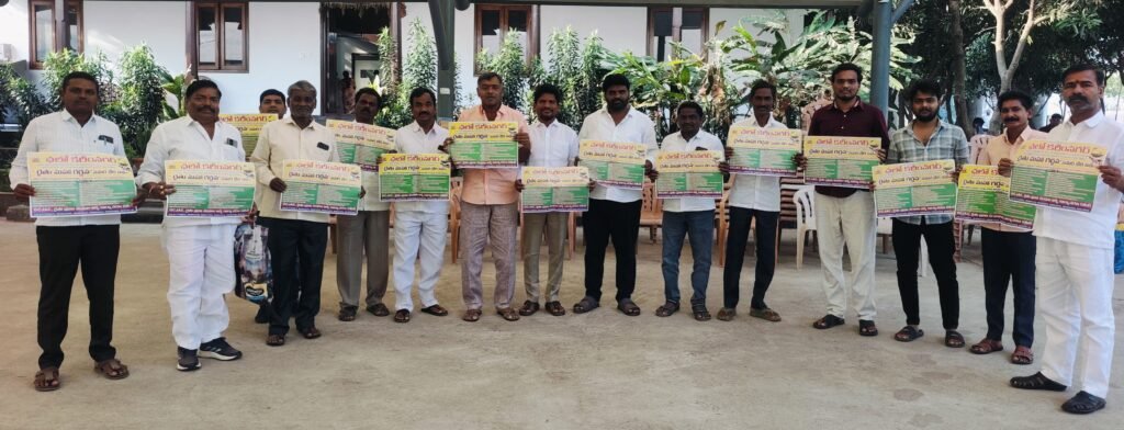 సమరభేరి సభ వాల్ పోస్టర్ల ను ఆవిష్కరిస్తున్న రామారావు, నాయకులు..