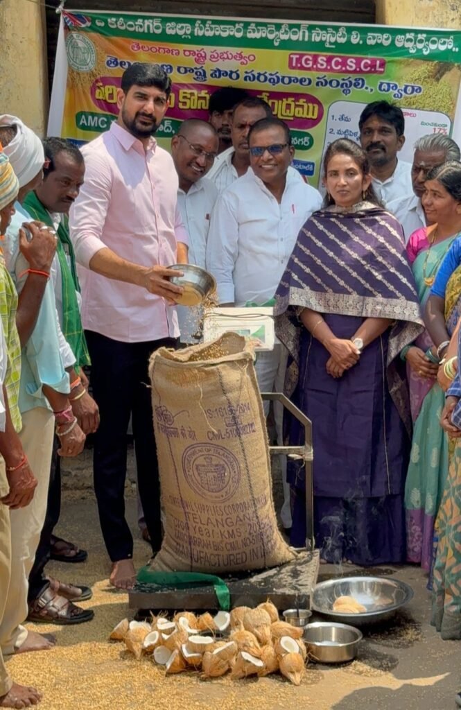 మండల యాదగిరి, స్వర్ణోదయం ప్రతినిధి హుజురాబాద్: రైతులు ధాన్యం కొనుగోలు కేంద్రాల వద్ద ఉంచిన ధాన్యాన్ని తరుగు పేరుతో అధికారులు ఇబ్బంది పెట్టరాదని హుజురాబాద్ ఎమ్మెల్యే పాడి కౌశిక్ రెడ్డి అన్నారు. సోమవారం హుజూరాబాద్ పట్టణంలోని వ్యవసాయ మార్కెట్ కార్యాలయంలో ధాన్యం కొనుగోలు కేంద్రాన్ని ఆయన మున్సిపల్ చైర్ పర్సన్ రొంటాల సుహాసినితో కలిసి ప్రారంభించారు.