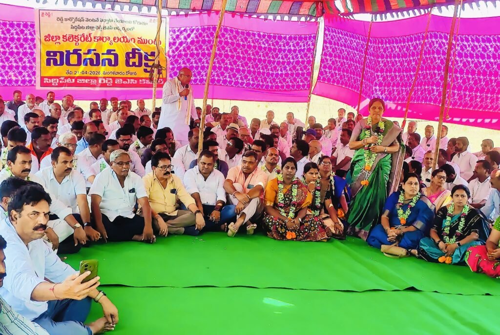 మండల యాదగిరి, స్వర్ణోదయం ప్రతినిధి కరీంనగర్ (సిద్దిపేట): ప్రభుత్వం ఇచ్చిన హామీల అమలులో ఎందుకు నిర్లక్ష్యం చూపుతుంది ? ఎన్నికలకు ముందు పీసీసీ అధ్యక్షుడి హోదాలో పేద రెడ్ల సంక్షేమం కోసం రెడ్డి కార్పొరేషన్ ఏర్పాటు చేస్తామని ప్రకటించిన రేవంత్ రెడ్డి అధికారంలోకి వచ్చి రెండున్నరేండ్లు దాటుతున్నా సిఎం రేవంత్ రెడ్డి, రెడ్డి కార్పోరేషన్ పాలక మండలి ఏర్పాటు చేయకుండా నిధులు కేటాయించలేదని ఇతర హామీలు అమలు చేయకుండా కాలయాపన చేస్తూ ఓటు బ్యాంక్ రాజకీయాలతో ఓసిలను అనగ తొక్కుతున్నారని మండి పడ్డారు. మంగళవారం సిద్ధిపేట జిల్లా కలెక్టర్ కార్యాలయం ఎదుట సిద్ధిపేట జిల్లా రెడ్డి జేఏసీ ఆధ్వర్యంలో భారీ ఎత్తున ధర్నా నిరసన దీక్ష చేపట్టారు. రాష్ట్ర వ్యాప్తంగా పలువురు రెడ్డి, ఓసి రాష్ట్రస్థాయి వివిధ జిల్లాల ఐకాస నాయకులు భారీ సంఖ్యలో పాల్గొన్నారు. రెడ్డి జేఏసీ జిల్లా అధ్యక్షుడు అయిలినేని మల్లిఖార్జునరెడ్డి అధ్యక్షతన నిర్వహించిన ఈ కార్యక్రమంలో రెడ్డి జేఏసీ రాష్ట్ర అధ్యక్షుడు అప్పామ్మగారి రాంరెడ్డి, రెడ్డి ఐక్య వేదిక రాష్ట్ర అధ్యక్షుడు ఏనుగు సంతోష్ రెడ్డి, ఓసి జేఏసీ జాతీయ అధ్యక్షుడు పోలాడి రామారావు, ప్రథాన కార్యదర్శి సంధి తిరుపతిరెడ్డి, ఓసి జేఏసీ రాష్ట్ర అధ్యక్షుడు గోపు జైపాల్ రెడ్డి, రెడ్డి జాగృతి రాష్ట్ర అధ్యక్షుడు బుట్టంగారి మాధవరెడ్డి, ఉత్తర తెలంగాణ జిల్లాల అధ్యక్షుడు పెండ్యాల రాంరెడ్డిలు పాల్గొని మాట్లాడుతూ..