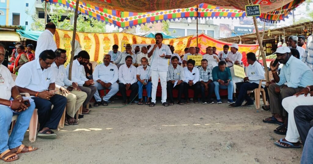 నిరసన దీక్షలో మాట్లాడుతున్న టా ప్రా జిల్లా అధ్యక్షుడు జనార్ధన్..