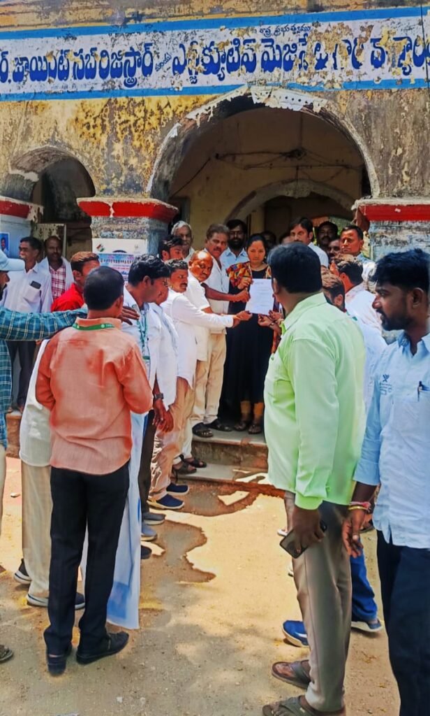 డంపింగ్ యార్డ్ రద్దు చేయాలని తాసిల్దార్ కు వినతి పత్రం ఇస్తున్న నాయకులు..