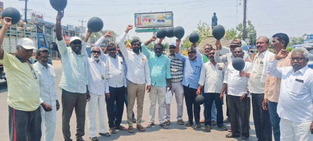 మండల యాదగిరి, స్వర్ణోదయం ప్రతినిధి హుజురాబాద్: గత 32 రోజులుగా డంపింగ్ యార్డ్ రద్దు కోసం ప్రజలు నిరసన తెలుపుతున్న ప్రభుత్వం స్పందించకపోవడం పట్ల అఖిలపక్ష నాయకులు హుజురాబాద్ అంబేద్కర్ చౌరస్తా వద్ద కళ్ళకు నల్ల రిబ్బన్లు కట్టుకొని, నల్ల బెలూన్లు చూపుతూ నిరసన తెలిపారు.