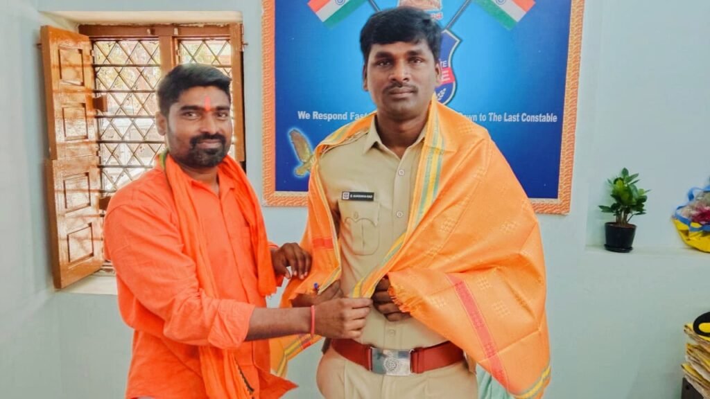 ఎస్సైని శాలువాతో సత్కరిస్తున్న కొంగ ప్రవీణ్