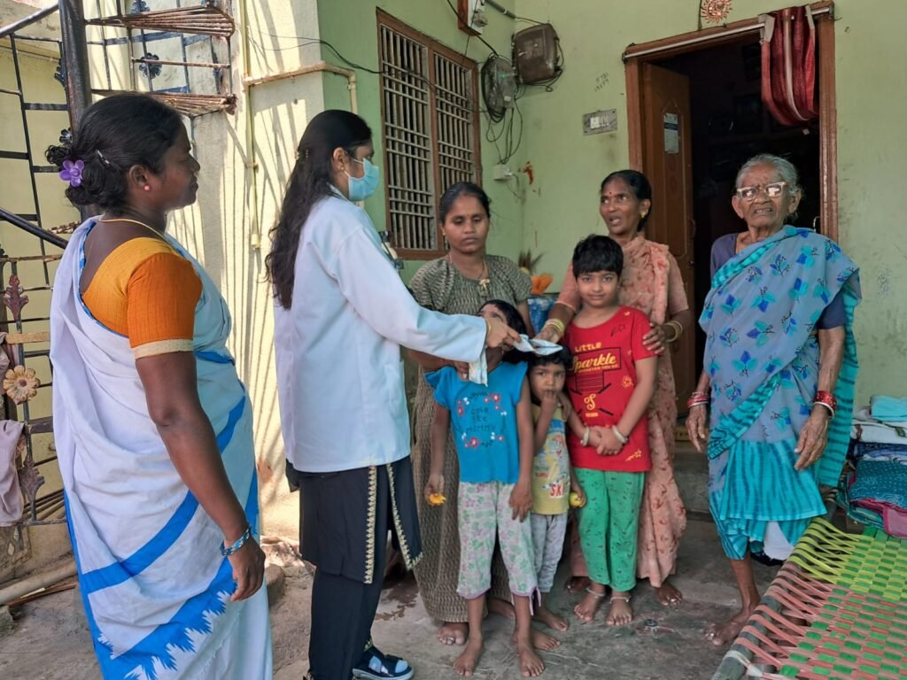 ఇంటింటా తిరిగి ఓఆర్ఎస్ ప్యాకెట్లు పంపిణీ చేస్తున్న వైద్యురాలు జరీన, వైద్య సిబ్బంది