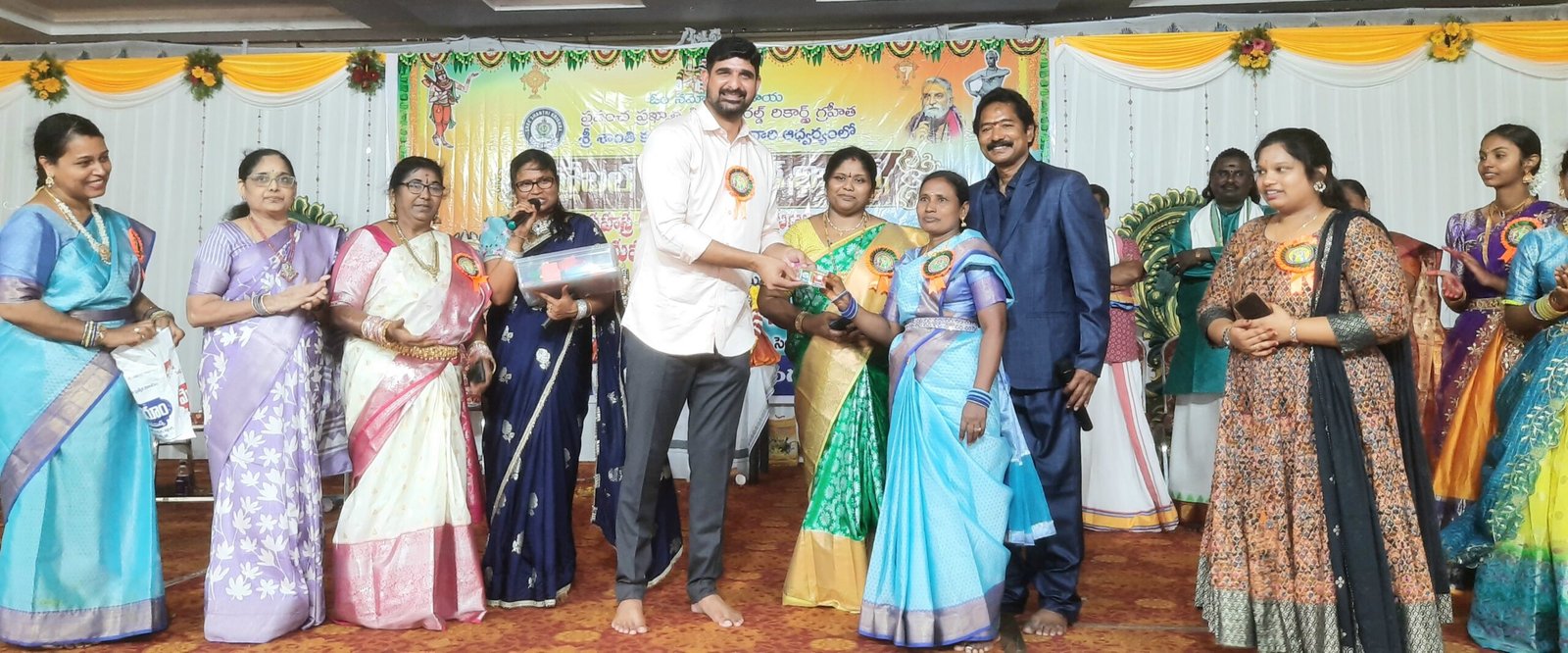 మండల యాదగిరి, స్వర్ణోదయం ప్రతినిధి హుజురాబాద్: ఒక వెయ్యి ఎనిమిది మంది మహిళలచే గోవింద నామాలతో కోలాట మహా బృంద నృత్యం ద్వారా హుజురాబాద్ లోని తపస్వి డాన్స్ అకాడమీ ప్రపంచ ప్రఖ్యాత గిన్నిస్ వరల్డ్ రికార్డ్స్ గ్రహీత, సహస్ర మహోత్సవ సామ్రాట్ శ్రీ శాంతి కృష్ణ సేవా సమితి వారి గ్లోబల్ డివోషనల్ రికార్డ్స్ ను సాధించి హుజురాబాద్ కు వన్నె తీసుకువచ్చారని హుజురాబాద్ ఎమ్మెల్యే పాడి కౌశిక్ రెడ్డి పేర్కొన్నారు. సోమవారం ఉదయం హుజరాబాద్ లో నిర్వహించిన ఈ కార్యక్రమానికి ముఖ్యఅతిథిగా హాజరై మాట్లాడారు. మొట్టమొదటిసారిగా ప్రపంచ స్థాయి రికార్డు నెలకొల్పడం ఎంతో శుభ పరిణామని ఇంతటి మహోన్నత కార్యక్రమాన్ని నిర్వహించిన నృత్య దర్శకురాలు శ్రీమతి డా. చిలమకూరి శ్వేతా (సీతారత్నం) ఎంతో ప్రశంసనీయురాలని కొనియాడారు. ప్రభుత్వాలు ఏవైనా కళాకారుల అభివృద్ధి కోసం తన వంతు బాధ్యతతో కృషి చేస్తానని కళాకారులకు హామీ ఇచ్చారు. తెలంగాణ రాష్ట్రంలోని అనేక జిల్లాల నుండి హుజరాబాద్ కు విచ్చేసిన కళాకారులు అందరికీ ఆయన శుభాకాంక్షలు తెలిపారు. హుజురాబాద్ నియోజకవర్గంలోని అక్కచెల్లెళ్లకు ఏ అవసరం ఉన్న తనను సంప్రదించాలని అన్నారు. ఎన్నికల సమయంలో ఏవైతే హామీలు ఇచ్చాను వాటిని నెరవేర్చడానికి శక్తి వంచన లేకుండా కృషి చేస్తానని అన్నారు. ఏ మహిళకు ఆపద వచ్చిన తనకు ఫోన్ చేస్తే తనవంతు సహాయ సహకారాలు తప్పక అందిస్తానని హామీ ఇచ్చారు. బృందాలను తీసుకువచ్చిన మహిళలకు లక్కీ డ్రా ద్వారా వెండి కాయిన్స్ డ్రా చేస అందజేశారు . ఈ కార్యక్రమంలో హుజరాబాద్ మునిసిపల్ చైర్ పర్సన్ గందె రాధిక, జమ్మికుంట మున్సిపల్ చైర్మన్ రాజేశ్వరరావు, హుజురాబాద్ లోని ప్రముఖులు, డాన్స్ అకాడమీ నిరాకరాలు శ్వేతరత్నం, పెద్ద ఎత్తున వివిధ ప్రాంతాల నుండి విచ్చేసిన కళాకారులు, కళాభిమానులు ఈ ఉత్సవాలలో పాల్గొన్నారు.