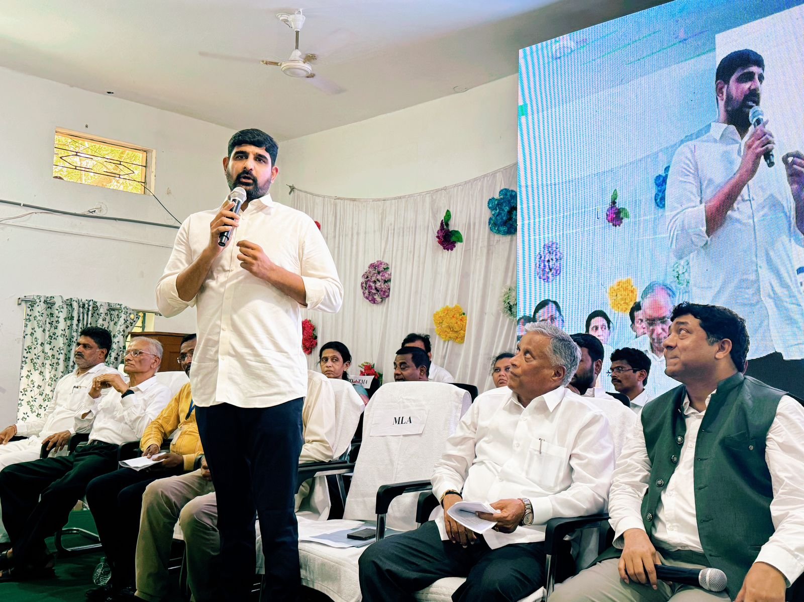 మండల యాదగిరి, స్వర్ణోదయం ప్రతినిధి జమ్మికుంట జూన్ 18 : జమ్మికుంట పట్టణంలోని రైల్వే స్టేషన్ లో మంగళవారం జరిగిన కార్యక్రమంలో హుజురాబాద్ ఎమ్మెల్యే పాడి కౌశిక్ రెడ్డి ప్రసంగిస్తుండగా ఆయన ప్రసంగాన్ని అడ్డుకునే ప్రయత్నం బిజెపి, కాంగ్రెస్ నేతలు చేశారు. కౌశిక్ రెడ్డి సీఎం కేసీఆర్ ప్రారంభించిన రైతుబంధు, రైతు బీమా ,24 గంటల కరెంటు, కాలేశ్వరం ప్రాజెక్టు తదితర అంశాలు వివరిస్తుండగా బిజెపి, కాంగ్రెస్ నేతలు ఒకసారిగా అడ్డు తగలడం విస్మయానికి గురిచేసింది. నియోజకవర్గ ఎమ్మెల్యేగా అధికారిక కార్యక్రమానికి హాజరై ప్రసంగిస్తుండగా ఇరు పార్టీల నేతలు కుమ్మక్కై అడ్డుకోవడం చర్చనీయాంశమైంది. ఈ విషయమై బిఆర్ఎస్ పార్టీ నేతలు ఆగ్రహం వ్యక్తం చేశారు. ఒక ఎమ్మెల్యేగా అధికారిక పార్టీ కార్యక్రమంలో మాట్లాడే హక్కు లేదా అని ప్రశ్నించారు. కెసిఆర్ ప్రభుత్వ హయాంలో జరిగిన అభివృద్ధి కార్యక్రమాలని కౌశిక్ రెడ్డి వివరించారని దీన్ని అడ్డుకోవడం ప్రోటోకాల్ ను విస్మరించడమేనని మండిపడ్డారు. అలాంటప్పుడు కార్యక్రమాలు ఎందుకు నిర్వహిస్తున్నారని, ఎందుకు ఎమ్మెల్యేను ఆహ్వానించారని ప్రశ్నించారు. నియోజకవర్గంలో ప్రజాస్వామ్యానికి ఖూనీ చేసి, అపహస్యం చేస్తున్నారని ఇది శాసనసభ్యుల హక్కులకు ఉలంగాన కిందికి వస్తుందని అన్నారు. దమ్ముంటే కాంగ్రెస్, బిజెపి నాయకులు వారు చేసిన కార్యక్రమాల గురించి చెప్పుకోవాలని, అంతేకానీ ఎమ్మెల్యే ప్రసంగాన్ని ఆపాలని ప్రయత్నించడం వారి కుటిల రాజకీయ నీతికి దర్పణం అని పేర్కొన్నారు.
