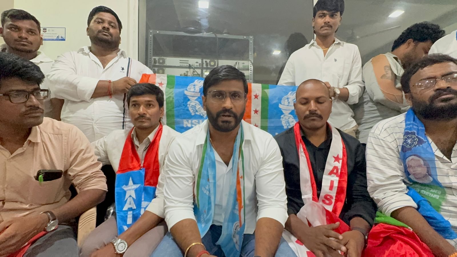 స్వర్ణోదయం ప్రతినిధి, హైదరాబాద్: నీట్ పరీక్ష రద్దు చేసి మళ్లీ నిర్వహించాలని, విద్యార్థులకు న్యాయం జరిగేలా చూడాలని కేంద్ర మంత్రి కిషన్ రెడ్డి అప్పోయింట్మెంట్ కోరడం జరిగిందనీ ఎమ్మెల్సీ బల్మూరు వెంకట్ స్పష్టం చేశారు. హైదరాబాద్ నలకుంట పోలీస్ స్టేషన్ లో అయన మాట్లాడుతూ.. కిషన్ రెడ్డి అపాయింట్మెంట్ ఇవ్వకపోవడంతో ఐక్య యువజన, విద్యార్థి సంఘాల నాయకులు అందరం కిషన్ రెడ్డి ఇంటిని ముట్టడించి నిరసన తెలిపే ప్రయత్నం చేశామన్నారు. ఇప్పటికైనా కేంద్ర మంత్రిగా ఉన్న కిషన్ రెడ్డి నీట్ విద్యార్థుల పక్షాన వారి డిమాండ్ లను మోదీ దృష్టికి తీసుకెళ్ళాలని కోరారు. వెంటనే కేంద్ర ప్రభుత్వం నీట్ పరీక్ష రద్దు చేసి మళ్ళి నిర్వహించాలనీ డిమాండ్ చేశారు. NTA నీ రద్దు చేసి జరిగిన పేపర్ లీకేజీ పై సుప్రీం కోర్ట్ సిట్టింగ్ జడ్జితో విచారణ జరిపించాలన్నారు. నీట్ పరీక్ష రాసిన 24లక్షల మంది విద్యార్థులకు, వారి తల్లితండ్రులకు కేంద్ర ప్రభుత్వం క్షమాపణలు చెప్పాలని డిమాండ్ చేశారు. మన తెలుగు రాష్ట్రాల నుండి కూడా 60 వేలకు పైనే విద్యార్థులు నీట్ పరీక్ష రాశారనీ, వారికి అలాగే దేశ వ్యాప్తంగా రాసిన 24లక్షల మంది విద్యార్థులకు న్యాయం చేయాలనీ కోరారు. నీట్ పరీక్ష రద్దు చేసి మళ్లీ నిర్వహించే వరకు విద్యార్థులకు న్యాయం జరిగే వరకు మా పోరాటం కొనసాగుతూనే ఉంటుందనీ హెచ్చరించారు. కార్యక్రమంలో పాల్గొన్న సంఘాల నాయకులు ఏఐఎస్ఎఫ్ నాయకుడు పుట్ట లక్ష్మణ్, క్రాంతి, ఎస్ఎఫ్ఐ నాయకుడు రజనీకాంత్, విజేఎస్ మాసంపల్లి అరుణ్ కుమార్, పిడిఎస్యు నేతలు రామకృష్ణ, ఎస్ నాగేశ్వరరావు, శ్రీకాంత్, ఏ ఐ వై ఎఫ్ నాయకులు కె ధర్మేంద్ర, శ్రీకాంత్, డి ఎఫ్ వై కోట రమేష్, పి వై ఎల్ ప్రదీప్, ఎన్ ఎస్ యుఐ సిటీ ప్రెసిడెంట్ అభిజిత్ యాదవ్, రంగారెడ్డి జిల్లా ప్రెసిడెంట్ విష్ణువర్ధన్ రెడ్డి, నాయకులు పవన్, శ్రీకర్ ,విధుర్, కుందన్ యాదవ్, వినోద్ తో పాటు