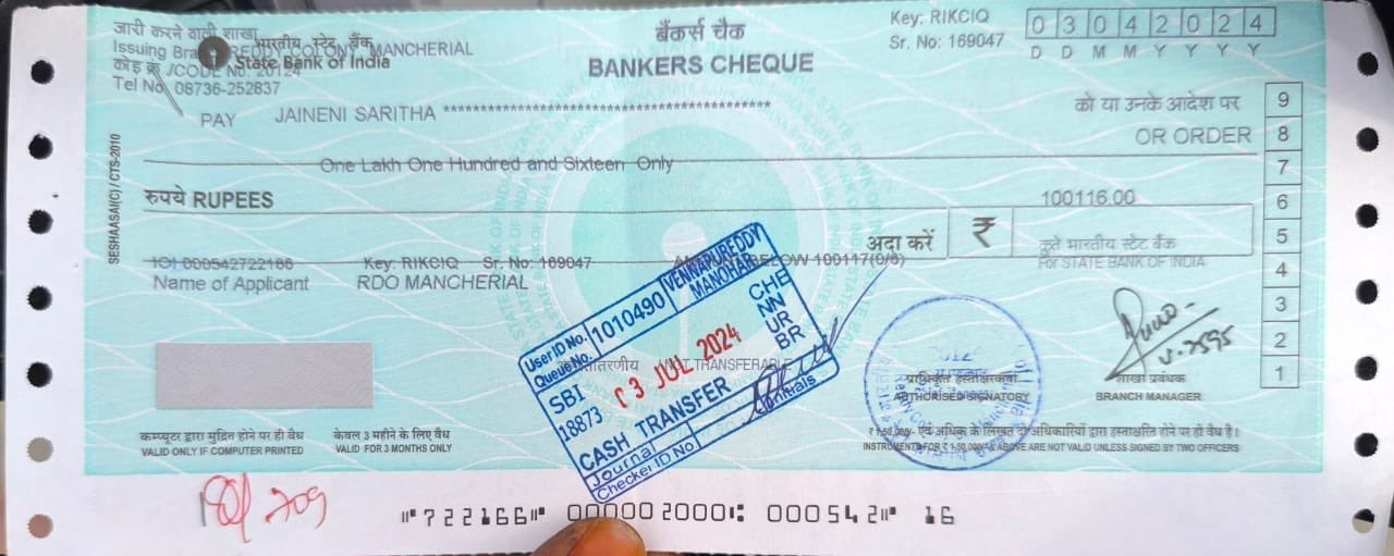 స్వర్ణోదయం ప్రతినిధి, మంచిర్యాల: మంచిర్యాల – కోటపల్లి మండలంలోని ఎదుల్లబంధం గ్రామానికి చెందిన జైనేని సరిత-శ్రీనివాస్ దంపతుల కూతురు మేఘన వివాహం 2023 ఫిబ్రవరి 23న జరిగింది. కల్యాణలక్ష్మి పథకానికి దరఖాస్తు చేసుకోగా.. సరిత పేరిట 2024 ఏప్రిల్ 3న రూ.1,00,116కు సంబంధించిన చెక్కు మంజూరైంది. ఆ చెక్కును లబ్ధిదారుకు మూడు నెలల తర్వాత బుధవారం కార్యాలయానికి పిలిచి మేఘన తల్లి సరితకు అందజేయగ.. చెక్కును మార్చుకునేందుకు బ్యాంకుకు వెళ్లిన సరిత సిబ్బందికి ఇచ్చారు.. వారు చెక్కు గడువు ముగిసిందని తిప్పి పంపించారు. కల్యాణ లక్ష్మి చెక్కు వచ్చి మూడు నెలలవుతున్నా అధికారులు చెప్పలేదని.. చెల్లని చెక్కు ఇచ్చారని లబ్ధిదారు సరిత మరియు ఆమె కూతురు మేఘన ఆవేదన వ్యక్తం చేశారు. కాగా దీనిపై సమగ్ర విచారణ జరిగి బాధ్యులపై చర్యలు తీసుకుంటామని మంచిర్యాల ఆర్డీవో స్పష్టం చేశారు.