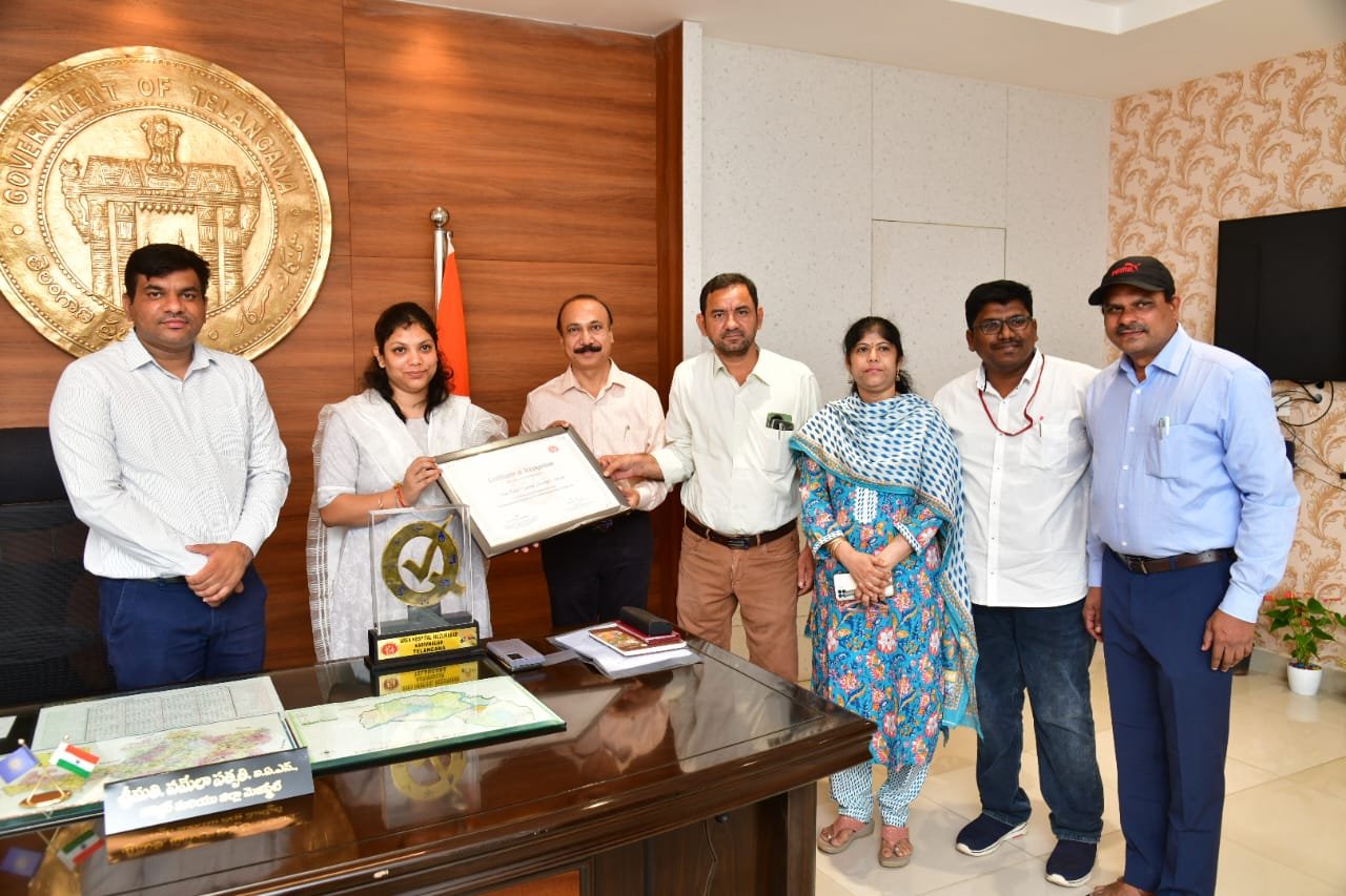 మండల యాదగిరి, స్వర్ణోదయం ప్రతినిధి హుజురాబాద్: కరీంనగర్ జిల్లా హుజురాబాద్ ఏరియా హాస్పిటల్ కు నేషనల్ క్వాలిటీ అస్యూరెన్స్ స్టాండర్డ్స్ అవార్డ్ (NQAS)ను కేంద్ర ఆరోగ్య, కుటుంబ సంక్షేమ మంత్రిత్వ శాఖ అందించిందని జిల్లా కలెక్టర్ ప్రమేలా సత్పతి తెలిపారు. గురువారం ఈ మేరకు జిల్లా వైద్యాధికారి డాక్టర్ సుజాత తో పాటు వైద్యాధికారులు జిల్లా కలెక్టర్ ను కలిశారు. ఈ మేరకు అందుకున్న అవార్డును కలెక్టర్ కు అందజేశారు. 95 శాతం అచీవ్మెంట్ సాధించినందుకు ఏరియా హాస్పిటల్ కు అవార్డుకు ఎంపిక కావడం అభినందనీయమని జిల్లా కలెక్టర్ పేర్కొన్నారు. భారతదేశంలోనే టాప్ 3లో నిలవడం కరీంనగర్ కు గర్వకారణమని తెలిపారు. ఈ కార్యక్రమంలో జిల్లా వైద్యాధికారి సుజాత, ఏరియా ఆసుపత్రి సూపర్టిండెంట్ రాజేందర్ రెడ్డి, ఆర్ ఎం ఓ సుధాకర్ రావు, వైద్య విధాన పరిషత్ అధికారులు పాల్గొన్నారు.
