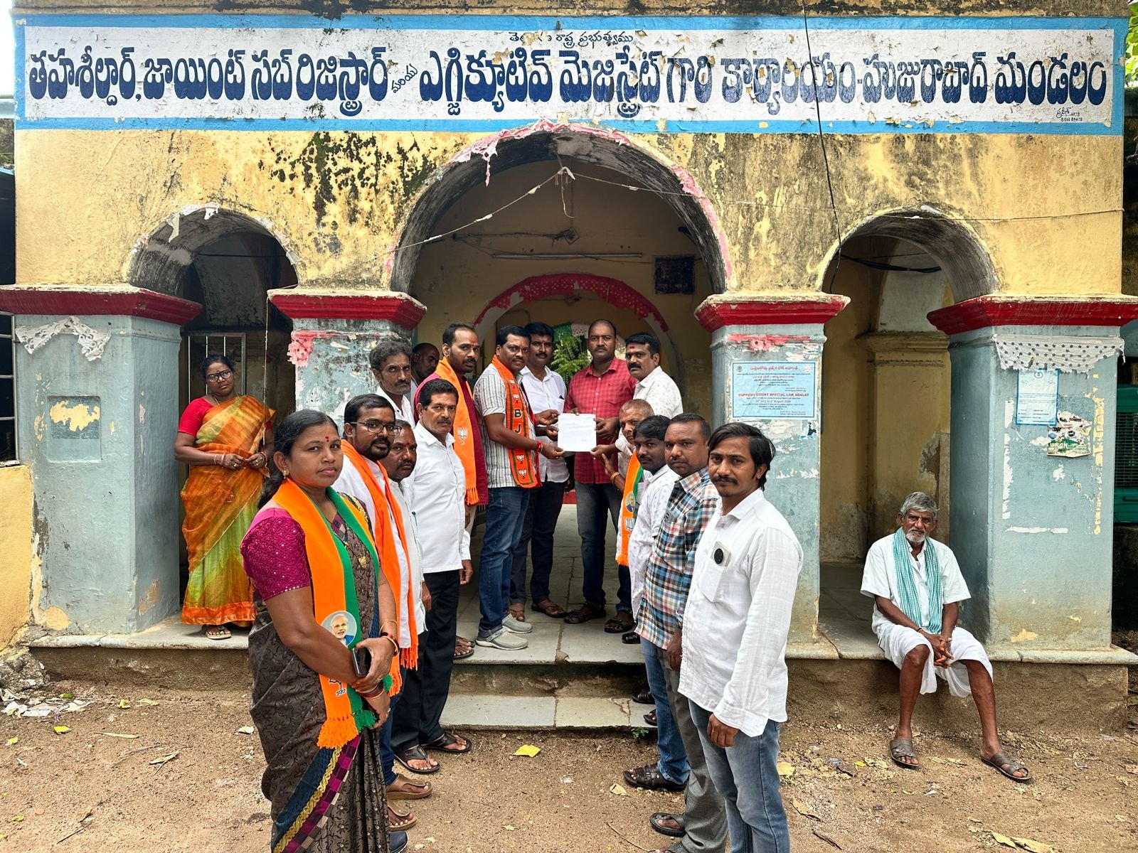 భారతీయ జనతా పార్టీ హుజరాబాద్ పట్టణ అధ్యక్షులు గంగిశెట్టి రాజు ఆధ్వర్యంలో హుజురాబాద్ అంబేద్కర్ చౌరస్తా వద్ద నిన్న రాత్రి జరిగిన పండ్ల దుకాణాల అగ్ని ప్రమాదంపై సమగ్ర విచారణ జరిపి బాధితులకు నష్టపరిహారం చెల్లించాలని ఎమ్మార్వో కి వినతిపత్రం అందజేశారు. ఈ కార్యక్రమంలో కౌన్సిలర్ పైళ్ల వెంకటరెడ్డి, పట్టణ ప్రధాన కార్యదర్శి తుర్పాటి రాజు, ఓబీసీ మోర్చా జిల్లా ఉపాధ్యక్షులు రావుల వేణు, జిల్లా కార్యవర్గ సభ్యులు గంగిశెట్టి ప్రభాకర్, ఉపాధ్యక్షులు యళ్ల సంజీవరెడ్డి, ఓబీసీ మోర్చా పట్టణ అధ్యక్షులు గంట సంపత్, శక్తి కేంద్ర ఇన్చార్జి కొలిపాక వెంకటేష్, బూత్ అధ్యక్షులు దేవేంద్ర, అయిత సందీప్, ఆవుల సదయ్య, కుసుమ సమ్మయ్య, క్యాస వెంకటేష్, నాయకులు, కార్యకర్తలు తదితరులు పాల్గొన్నారు.