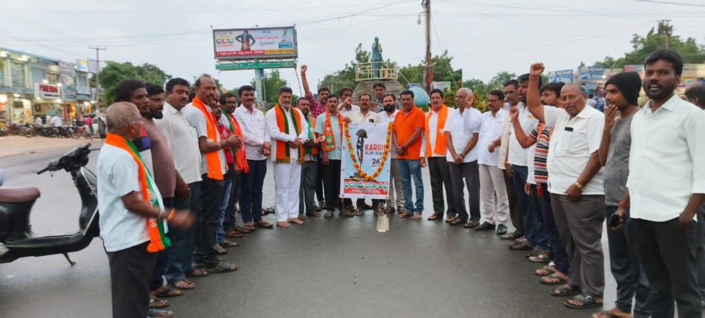 మండల యాదగిరి, స్వర్ణోదయం ప్రతినిధి, హుజురాబాద్: దేశ సరిహద్దులను దాటుకొని అక్రమంగా మన దేశంలోకి చొరబడ్డ పాకిస్తాన్ సైన్యాన్ని భారత ఆర్మీ తిప్పికొట్టిన ప్రదేశం, ప్రతి భారతీయుడులోనూ చెరగని ముద్ర వేసిన పేరు కార్గిల్ అని బిజెపి జిల్లా అధ్యక్షుడు గంగాడి కృష్ణారెడ్డి అన్నారు. హుజురాబాద్ బిజెపి పట్టణ శాఖ అధ్యక్షులు గంగిశెట్టి రాజు ఆధ్వర్యంలో శుక్రవారం హుజురాబాద్ అంబేద్కర్ చౌరస్తాలో కార్గిల్ విజయ్ దివస్ వేడుకలు నిర్వహించారు. ఈ కార్యక్రమానికి ముఖ్య అతిథిగా హాజరైన గంగాడి కృష్ణారెడ్డి కార్గిల్ అమరవీరులకు బిజెపి జిల్లా పక్షాన సెల్యూట్ చేస్తూ ఘన నివాళులు అర్పిస్తున్నట్టు చెప్పారు. ముఖ్యంగా కార్గిల్ను విడిపించుకునే క్రమంలో పాకిస్తాన్పై ఓ మినీ యుద్ధమే చేసింది భారత్ అన్నారు. ఈ క్రమంలో 490 మంది ఆర్మీ అధికారులు, సైనికులు వీరమరణం పొందారని తెలిపారు. సైనికపరంగా అత్యంత వ్యూహాత్మక ప్రాంతమైన కార్గిల్ ను స్వాధీనం చేసుకోవడానికి జిల్లా ఉత్తర ప్రాంతంలో నియంత్రణ రేఖను దాటుకుని పాక్ సైనికులు భారత భూభాగంలోకి ప్రవేశించారన్నారు. కార్గిల్ చొరబాటును తొలిసారిగా 1999 మేలో గుర్తించారని, ఆ వెంటనే అప్పటి కేంద్ర ప్రభుత్వం సైనిక చర్యకు దిగిందన్నారు. అత్యంత సంక్లిష్టమైన పర్వత పంక్తుల మధ్య రెండున్నర నెలల పాటు పాక్తో భారతదేశము యుద్ధాన్ని కొనసాగించిందని, దీనికి ఆపరేషన్ విజయ్ అని పేరు పెట్టిందన్నారు. పాకిస్తాన్ చొరబాటుదారులను తరిమికొట్టింది. ఆపరేషన్ విజయ్లో భాగంగా టైగర్ హిల్ను తిరిగి స్వాధీనం చేసుకుని. 1999 జులై 26వ తేదీన కార్గిల్ కు పాక్ చెర నుంచి విముక్తి కల్పించిందన్నారు.. అందుకే ప్రతి ఏటా జులై 26న కార్గిల్ విజయ్ దివస్ వేడుకలు దేశవ్యాప్తంగా ఘనంగా నిర్వహించుకోవడం జరుగుతుందని తెలిపారు.