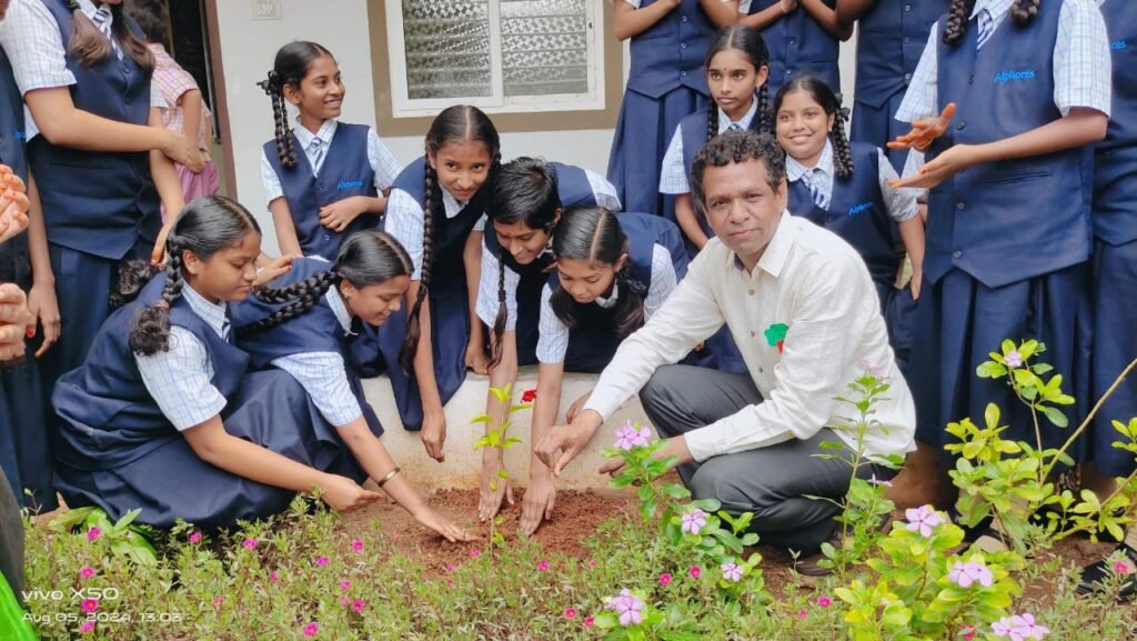 మండల యాదగిరి, స్వర్ణోదయం ప్రతినిధి, హుజురాబాద్: హుజురాబాద్ పట్టణంలోని ఆల్ఫోర్స్ జినీయస్ ఇంగ్లీష్ మీడియం పాఠశాలలో ఇందిర వన ప్రభ కార్యక్రమంలో భాగంగా చైర్మన్ వి నరేందర్ రెడ్డి పాఠశాల ఆవరణలో సోమవారం మొక్కలు నాటారు. పరీక్షల్లో అత్యధిక మార్కులు సాధించిన విద్యార్థులకు మొక్కలను, బహుమతులను ఆందజేశారు. ఈ సందర్భంగా ఆయన మాట్లాడుతూ పర్యావరణ పరిరక్షణ, వాతావరణ కాలుష్య నివారణకు ప్రతి ఒక్కరు మొక్కలు నాటాల్సిన అవసరం ఉందన్నారు. నాటిన ప్రతి మొక్కను సంరక్షించాల్సిన బాధ్యత మన అందరిపై ఉందన్నారు. విద్యార్ధులు తమ ఇంటి ఆవరణలో, ఇంటి ముందు మొక్కలు నాటాలని సూచించారు. మొక్కల పెంపకంతోనే మానవాళి మనుగడ సాధ్యం అవుతుందన్నారు. సకాలంలో వర్షాలు పడేందుకు చెట్లు ఎంతగానో దోహదం చేస్తాయని, స్వచ్ఛమైన గాలి మానవాళికి అందించేందుకు తోడ్పడుతాయన్నారు. మొక్కలు నాటడం వల్ల కలిగే లాభాలను విద్యార్థులకు వివరించారు. ఈ కార్యక్రమంలో ప్రధానోపాధ్యాయురాలు, ఉపాద్యాయులు, విద్యార్ధులు పాల్గొన్నారు.
