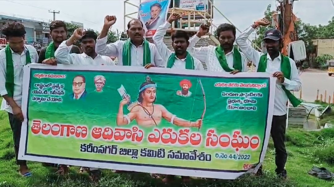 దేశంలో ఎప్పుడైతే భారతీయ జనతా పార్టీ అధికారంలోకి వచ్చిందో అప్పటినుండి సబ్బండా వర్గాల తెగలను అనగాదొక్కే ప్రయత్నం చేస్తుందన్నారు. జిల్లా అధ్యక్షుడు మాట్లాడుతూ కరీంనగర్ జిల్లాలో అత్యధిక ఆదివాసి గిరిజనులు ఉన్నప్పటికీ అందులో ఆదివాసి ఎరుకల తెగ విద్యా ఉద్యోగాలలో, సామాజికంగా, ఆర్థికంగా, రాజకీయంగా వెనుకబడి ఉన్నారని ప్రభుత్వానికి గుర్తు చేశారు. భారతదేశంలో మా వారసుడు ఏకలవ్యుడు తన సర్వస్వం కోల్పోయినట్లుగా తెలంగాణలో కూడా ఏకలవ్యుడు వారసులైన ఆదివాసి ఎరుకల ప్రజలు తెలంగాణలో సర్వం కోల్పోతున్నారని గుర్తు చేశారు.