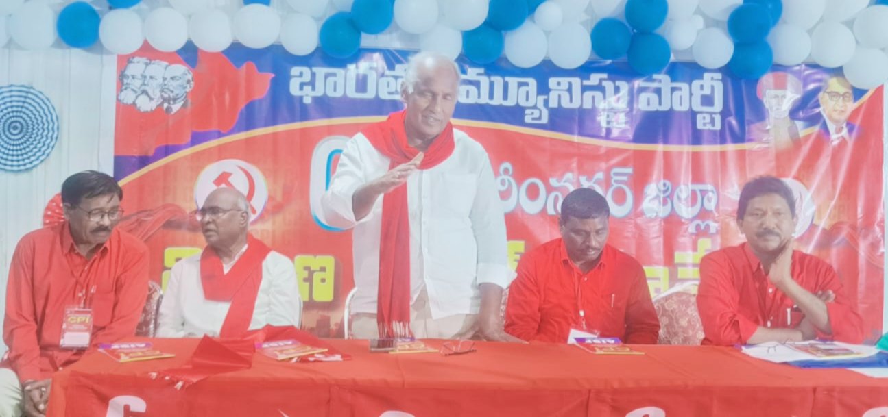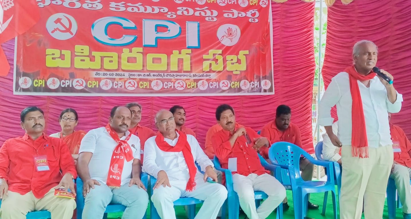 రుణమాఫీ ఇవ్వకుంటే మేము కాంగ్రెస్ పార్టీ తరుపున కాదు రైతుల తరుపున ఉంటామని, మనిషి ఉన్నంత కాలం కమ్యూనిస్టు పార్టీ బతికి ఉంటుందని,బద్దం ఎల్లారెడ్డి…సాయుధ పోరాట ప్రభావమే ఈ తెలంగాణ రాష్టం ఏర్పాటని అన్నారు. ఎర్రజెండా లేని దేశం లేదని, అధికారం ఎవరికి శాశ్వతం కాదని అధికారంలో ఉన్నవాళ్లు ప్రజల ఆకాంక్షల మేరకు పనిచేయాలని అన్నారు.దళిత బంధు రాని వారికి ప్రతిపైసా ఇప్పించే బాధ్యత తీసుకుంటున్నానని ఆయన అన్నారు. కాంగ్రెస్ పార్టీ అధికారం వచ్చి కొన్ని రోజులే అయింది కాబట్టి తప్పులు దిద్దుకోవడానికి ఆ పార్టీకి సమయం ఇస్తున్నాం సరిచేసుకోండని ఆయన అన్నారు. అనంతరం మాజీ ఎమ్మెల్యే సిపిఐ నాయకులు చాడ వెంకటరెడ్డి మాట్లాడుతూ…. సిపిఐ 100 సంవత్సరాలు చరిత్ర కలిగిన పార్టీ అని ఎర్రజెండా అంటేనే పేదల సమస్యల కోసం ఉన్న పార్టీ అని తెలంగాణలో పేరు ఉందని అన్నారు. డబుల్ బెడ్ రూమ్ ఇండ్ల సమస్య తీర్చడానికి ప్రభుత్వం నకు కొంత సమయం ఇచ్చి వారు తీర్చకపోతే ప్రజలతో కలిసి వాటిని వారికి అందజేస్తామని అన్నారు. సిపిఐ జిల్లా కార్యదర్శి మర్రి వెంకటస్వామి మాట్లాడుతూ…. పేదల పక్షపాతిగా ఉన్న సిపిఐ వారి ప్రయోజనాల కోసం ఎన్నో పోరాటాలు చేసిందని అన్నారు. పేద ప్రజల పక్షాన నిలబడి కనబడే పార్టీ సిపిఐ అని ఆయన అన్నారు. ఈ సమావేశంలో సిపిఐ రాష్ట్ర కార్యవర్గ సభ్యులు మంద పవన్, నాయకులు సదానందం, హుజురాబాద్ కార్యదర్శి గోవిందుల రవి, పొన్నగంటి కేదారి, కొయ్యడ సృజన్ కుమార్ బోయిన అశోక్, సురేందర్ రెడ్డి, గూడెం లక్ష్మి, వెంకటేష్, కేశ బోయిన రాము, రాజు, లంకదాసరి కళ్యాణ్, కృష్ణ, రోహిత్, చాంద్ పాషా తదితరులు పాల్గొన్నారు.
