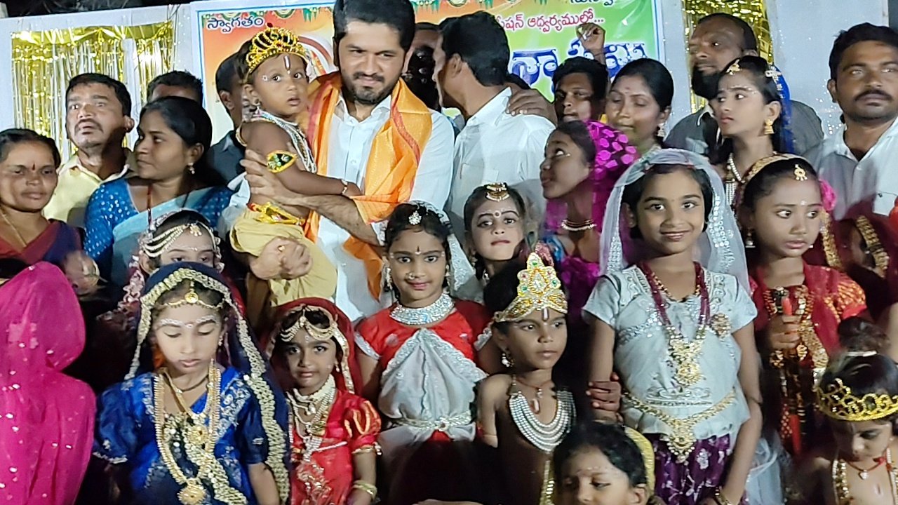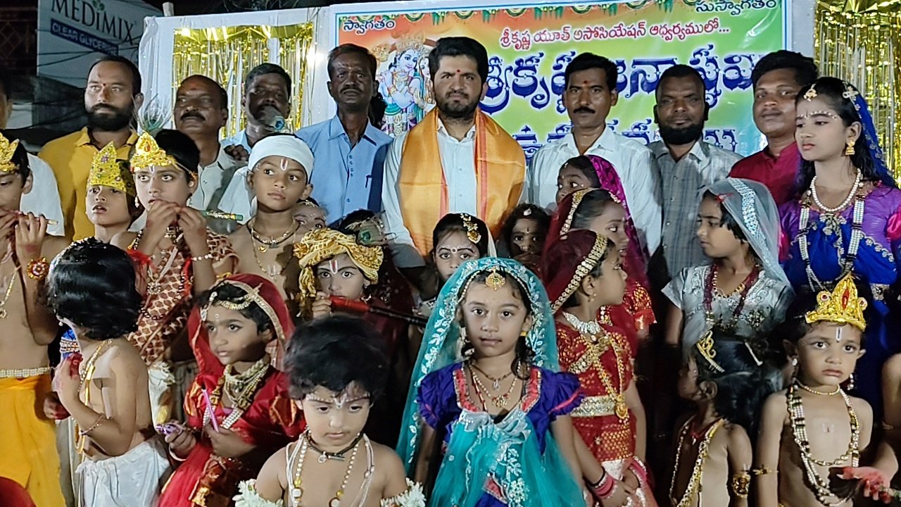 –రాధా కృష్ణుల వేషధారణలో చిన్నారులు.