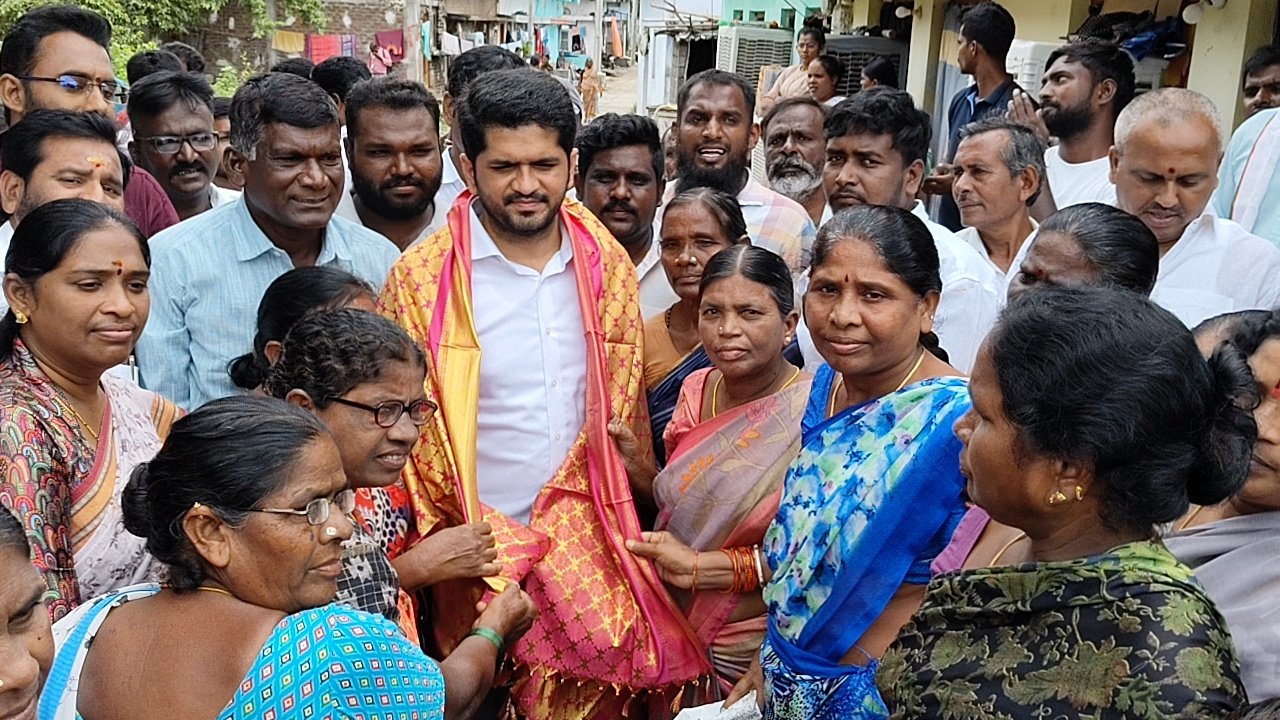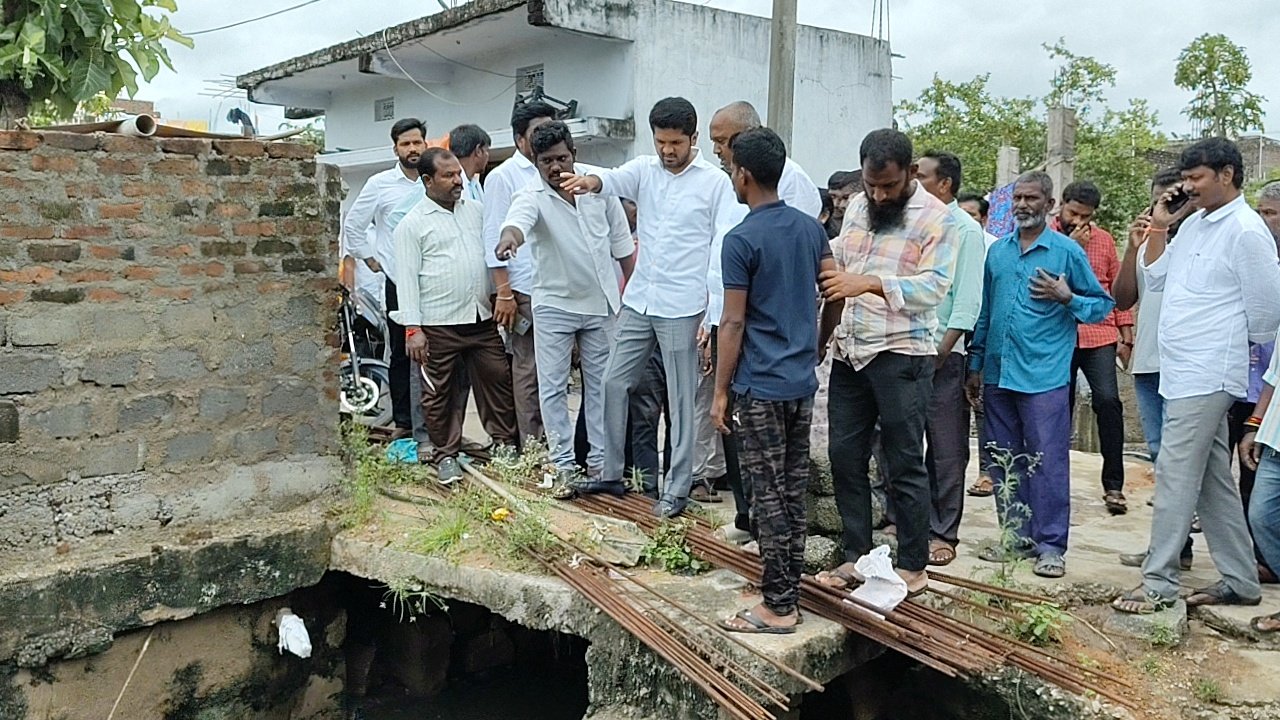 మండల యాదగిరి, స్వర్ణోదయం ప్రతినిధి హుజురాబాద్: జమ్మికుంట మున్సిపల్ పరిధిలోని హౌసింగ్ బోర్డ్ కాలనీతో పాటు, పిట్టలవాడ, అంబేద్కర్ కాలనీ, ప్రభుత్వ డిగ్రీ కాలేజ్ ఏరియాలో, 16వ వర్డ్, మోత్కులగూడెం కాలనీలో గత రెండు రోజుల క్రితం కురిసిన వర్షాలతో నీట మునిగిన ఇండ్లను హుజురాబాద్ కాంగ్రెస్ పార్టీ నియోజకవర్గ ఇన్చార్జ్ వొడితల ప్రణవ్ సందర్శించారు. ఈ సందర్భంగా పలువురు వరద భాదితులు ప్రణవ్ కు తమ సమస్యలు తెలియజేశారు. ప్రతి సంవత్సరం వర్షాలు వచ్చాయంటే ఇంట్లోకి నీళ్లు వచ్చి వస్తువులన్నీ తడిచిపోతున్నాయని, ఆర్థికంగా ఇబ్బందులు పడుతున్నామని పేర్కొన్నారు. ఎగువన ఉన్న మడిపల్లి, కొత్తపల్లి, శ్రీరాములపల్లి గ్రామాల నుండి వరద నీరు దిగువన ఉన్న హౌసింగ్ బోర్డ్ కాలనీలోకి వస్తున్నాయని, గతంలో ప్రజాప్రతినిధులు, అధికారులు వచ్చి వరద కాలువ నిర్మిస్తామని హామీ ఇచ్చారు తప్ప ఇప్పటివరకు పనులను ప్రారంభించలేదని కాలనీవాసులు ప్రణవ్ కు మొరపెట్టుకున్నారు. అనంతరం ప్రణవ్ మాట్లాడుతూ కాంగ్రెస్ ప్రభుత్వం ప్రతి కుటుంబానికి అండగా ఉంటుందని, వరద కాలువలు నిర్మాణానికి అవసరమైన నిధులు మంజూరు చేసే విధంగా కృషి చేస్తానని హామీ ఇచ్చారు. ప్రజలందరూ అప్రమత్తంగా ఉండాలని, అందుబాటులో ఉన్న కాంగ్రెస్ కార్యకర్తలు బాధితులకు సహాయ సహకారాలు అందించాలని సూచించారు. వోడితల ప్రణవ్ వెంట మున్సిపల్ కౌన్సిలర్లు,