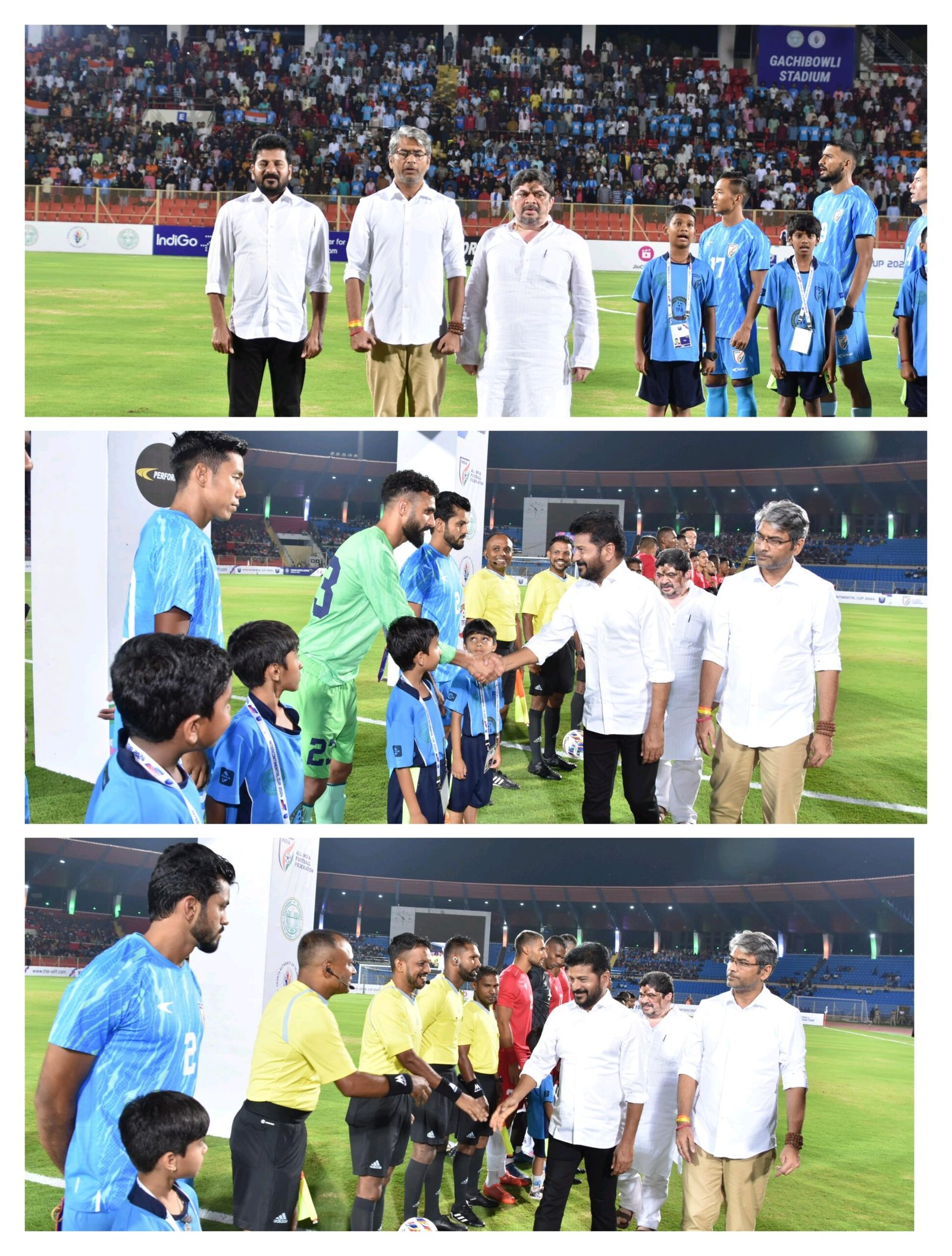 స్వర్ణోదయం ప్రతినిధి, హైదరాబాద్: ఫుట్ బాల్ టోర్నమెంట్ ను ముఖ్యమంత్రి రేవంత్ రెడ్డి ప్రారంభించారు. ఈ కార్యక్రమంలో మంత్రి పొన్నం ప్రభాకర్ పాల్గొన్నారు. ఈ టోర్నమెంట్ లో ఇండియా, మారిషస్, సిరియా దేశాలు పాల్గొన్నాయి. ఇవాళ ఇండియా వర్సెస్ మారిషస్ మ్యాచ్ కొనసాగింది. సెప్టెంబర్ 6న మారిషస్ వర్సెస్ సిరియా మ్యాచ్, సెప్టెంబర్ 9న ఇండియా వర్సెస్ సిరియా మ్యాచ్ లు ఉన్నాయి.